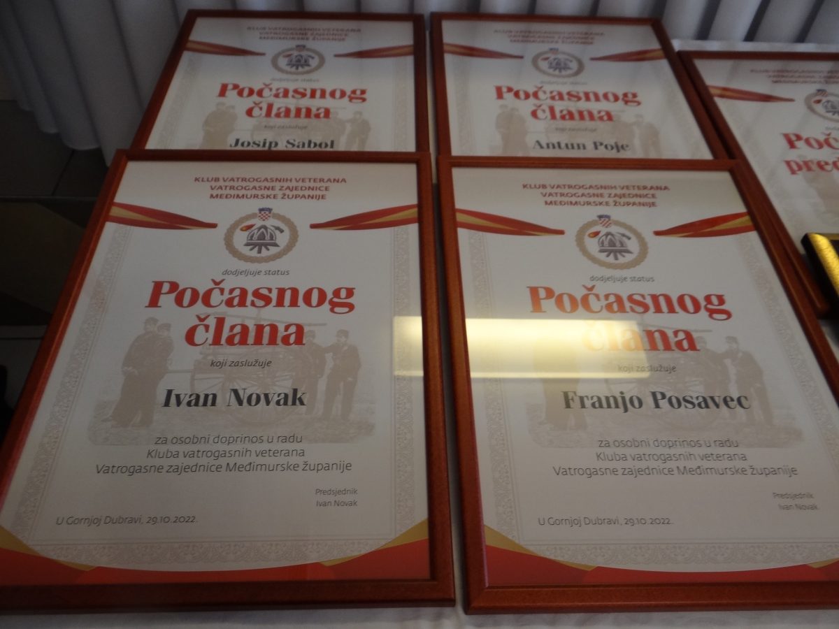 Znamenja počasnih članova im je uz emotivine riječi uručio Aleksandar Karlovčec, dok je medalje dobtnicima uručio dosadašnji predsjednik Ivan Novak.