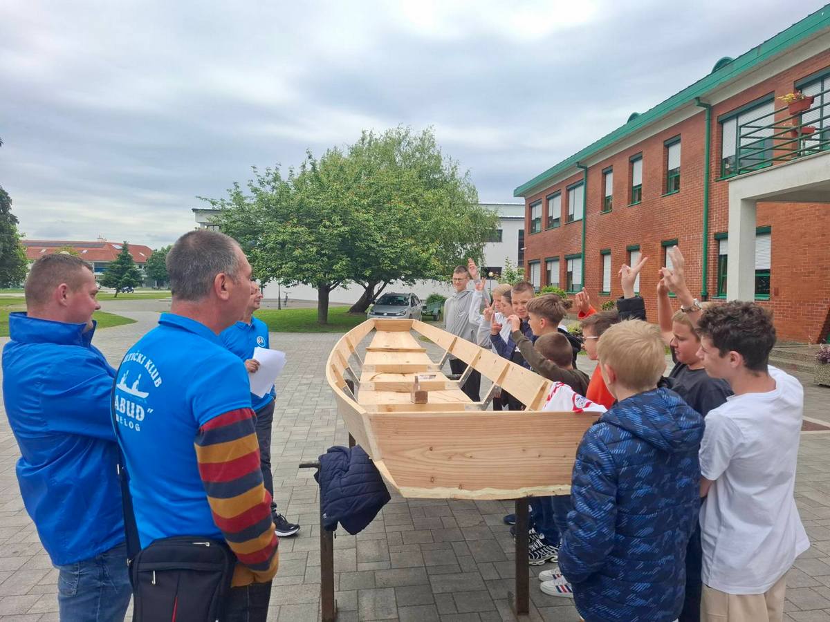 Učenici Osnovne škole Prelog imali su uzbudljiv dan 12. svibnja 2025. godine, kada im je u dvorištu škole, u organizaciji Nautičkog kluba Labud iz Preloga, prezentirana izgradnja tradicionalnog, riječnog drvenog čamca, u ovom slučaju novog čamca koji će sudjelovati na utrci „Lov na labuđe pero“ koja se već tradicionalno održava u organizaciji NK Labud.