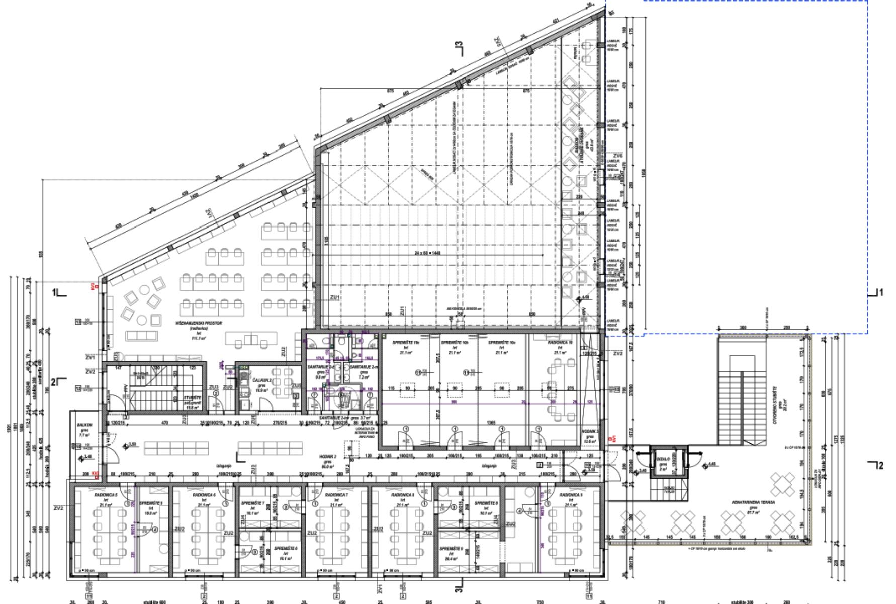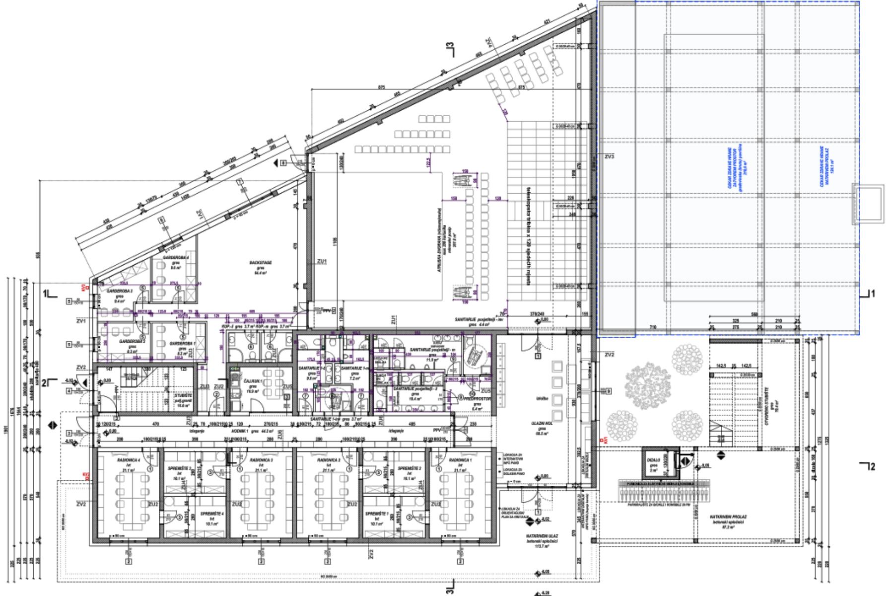 Tako će se u prizemlju nalaziti višenamjenska dvorana s pozornicom dimenzija 10×8 metara i gledalištem kapaciteta 240 sjedećih mjesta s uključenom teleskopskom tribinom i galerijom. Na katu će se nalaziti još jedan višenamjenski prostor za različite sadržaje, a u zgradi će se nalaziti i 10 prostorija za radionice i udruge. Tu su i atrij, garderobe, sanitarni čvorovi, čajna kuhinja, prostor za tehniku, spremišta, dizalo i drugi sadržaji.