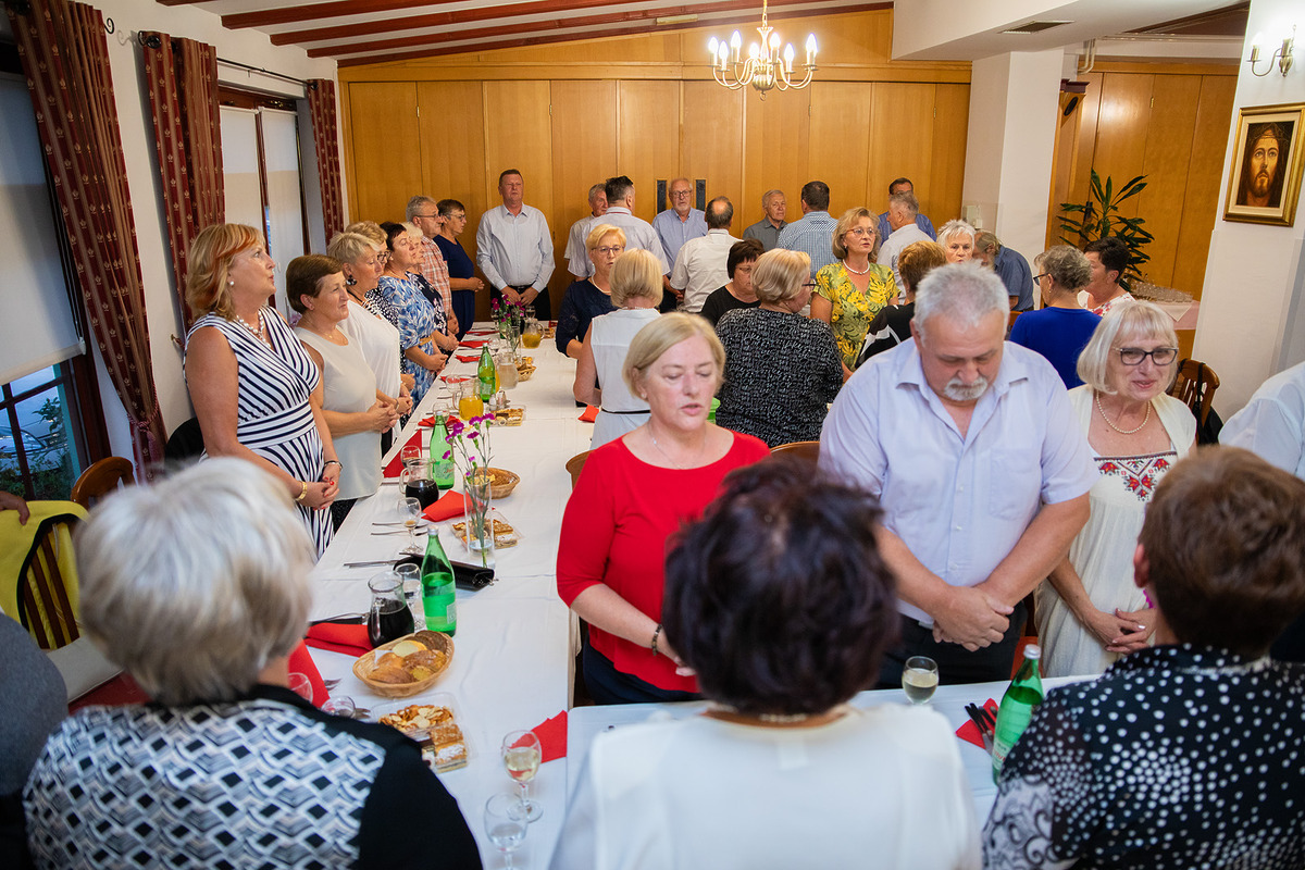 Svoje druženje započeli su jutarnjom misom u župnoj crkvi sv.Jakoba u znak sjećanje na pokojne školske kolegice i kolege. Spomenuli su se i ravnatelja koji su obilježili njihovo doba: Stjepana Ovčara, Milete Juga i Vinka Mlinareca, kao i svojih učitelja kojih više nema.
