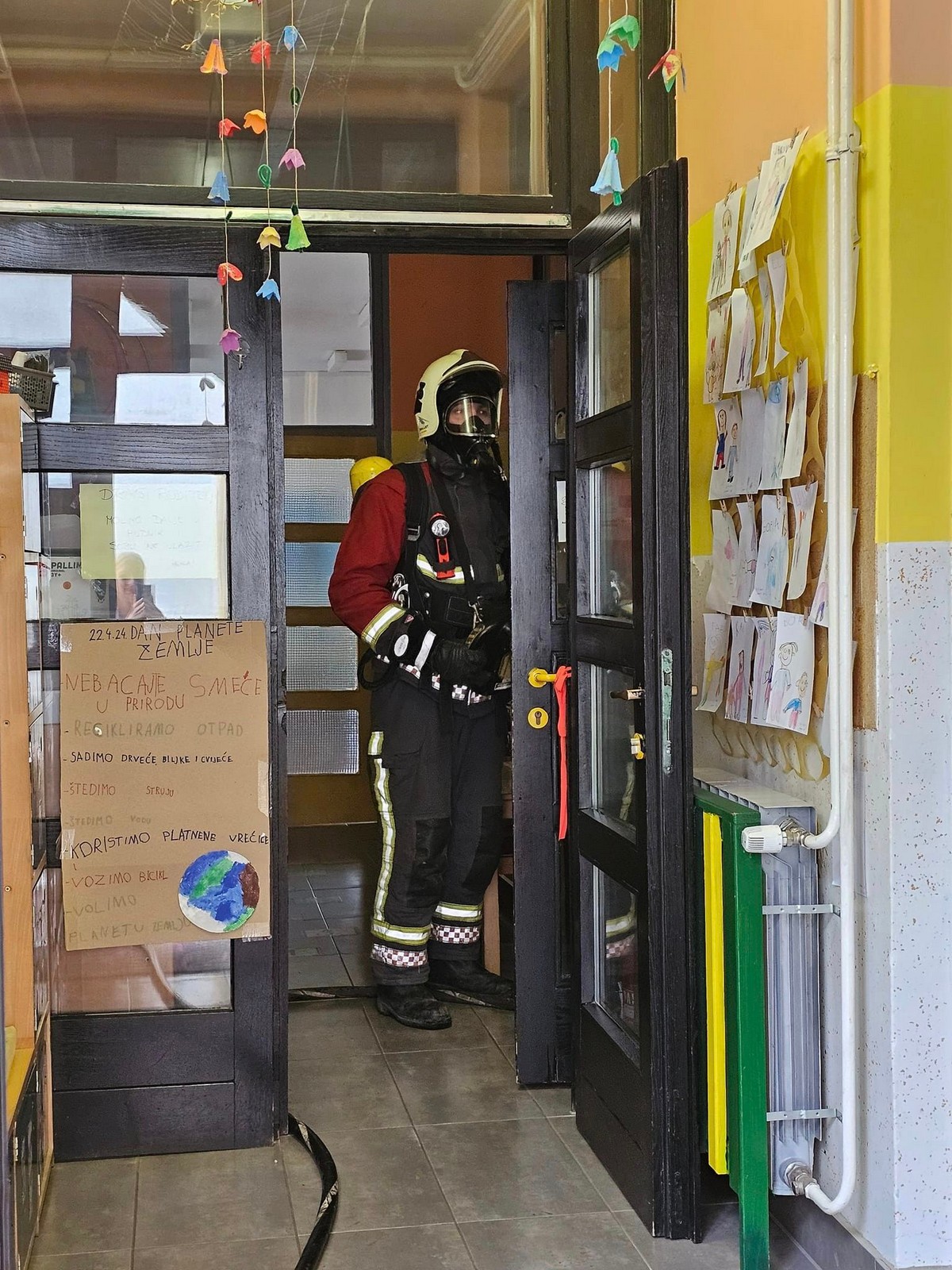 Vježba je izvedena pod pretpostavkom požara u zbornici. Djelatnici škole su izvršili evakuaciju, a vatrogasci unutarnjom navalom ugasili “požar”. Učenici su sa svojim učiteljicama uvježbali način kretanja iz učionice na sigurno mjesto na glavni ulaz škole i tamo pričekali vatrogasce.