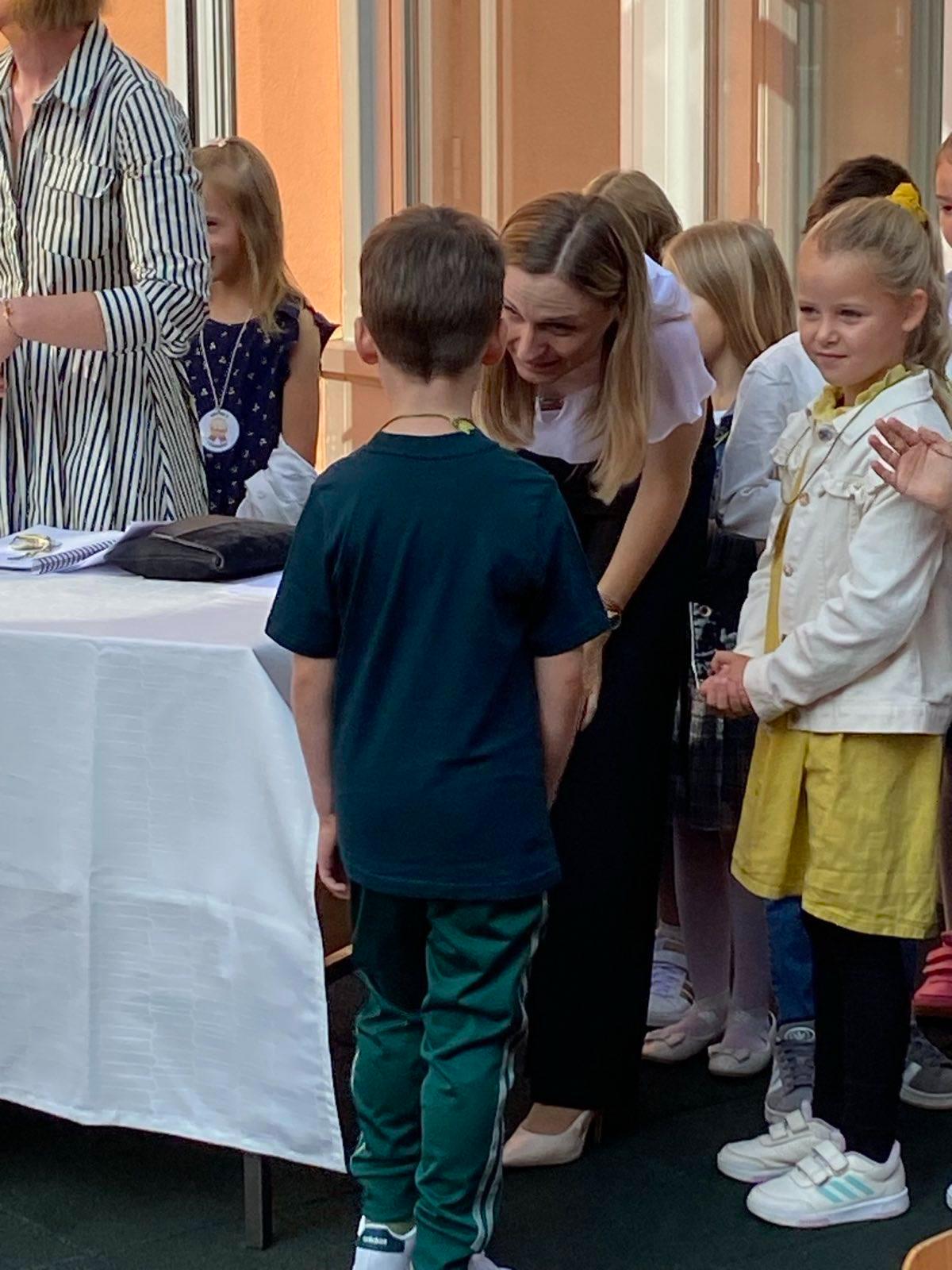 Učenike su dočekale njihove učiteljice – učiteljica 1.a razreda Andrea Vagaj i učiteljica 1.b razreda Lucija Ivanović. Svaki učenik bio je prozvan, ohrabren medaljom hrabrosti i podržan velikim pljeskom, što je bio znak da su svi spremni zakoračiti u svoje učionice.