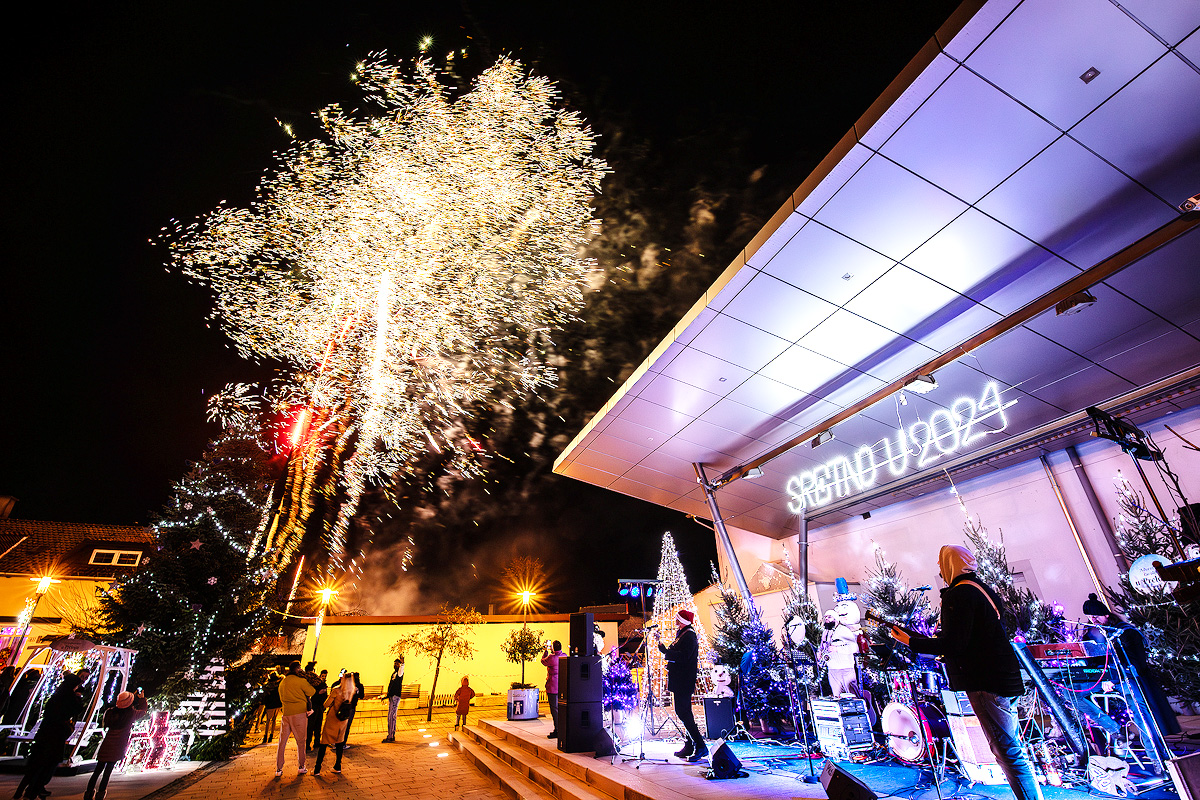 Građa Preloga i njihovi gosti Novu 2024. godinu dočekali su na Trgu slobode ispred Doma kulture u Prelogu.