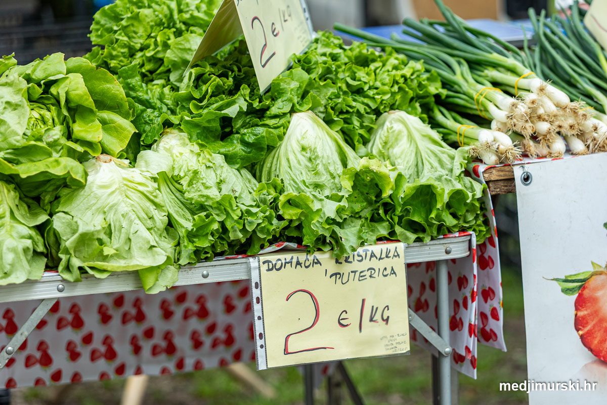 Cijena salate domaće kristalke i puterice je po 2 eura kilogram. Kilogram blitve je po 7 eura, kao i peršina. Krumpir je prodavan po 0,50 eura kilogram, a jagode po 6 eura kg, odnosno 3 eura 50 dkg. Češnjak je nuđen po 5 eura kilogram, batat po 1,5 eura kg.