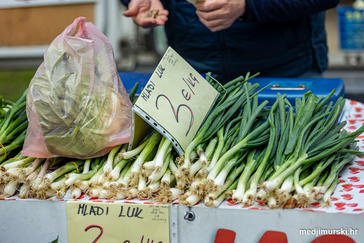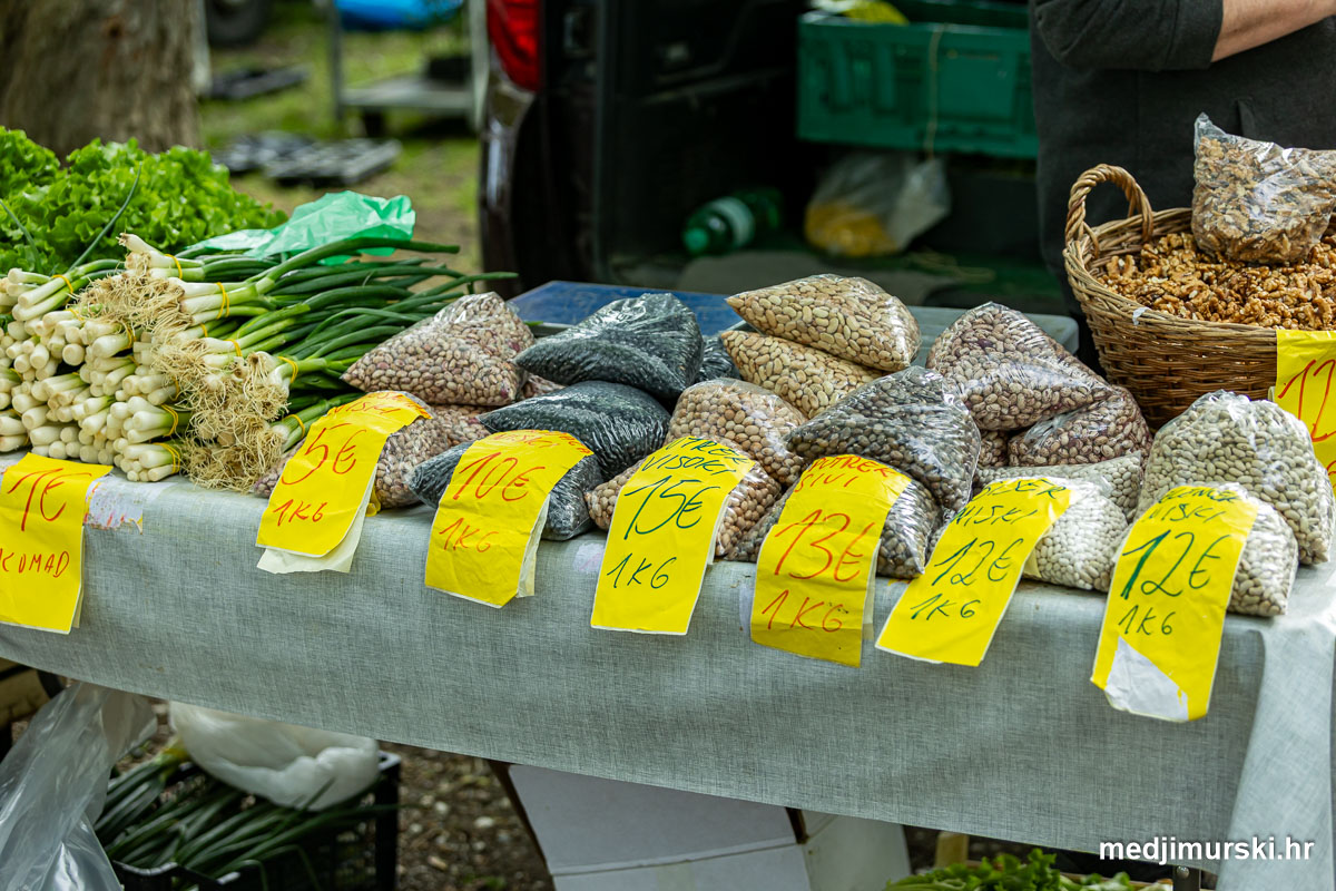 Hren je bio po 5 eura kilogram, vezica sitnijeg korijena hrena 1 euro, a naribani hren u staklenki 5 eura. Mladi luk također je prodavan po 5 eura kg, a vezica mladog luka po 1 euro. Poriluk je nuđen po 2 eura kg. Po 1 euro bile su i vezice crvene rotkvice i blitve. Očišćeni orasi nuđeni su po 12 eura kilogram.