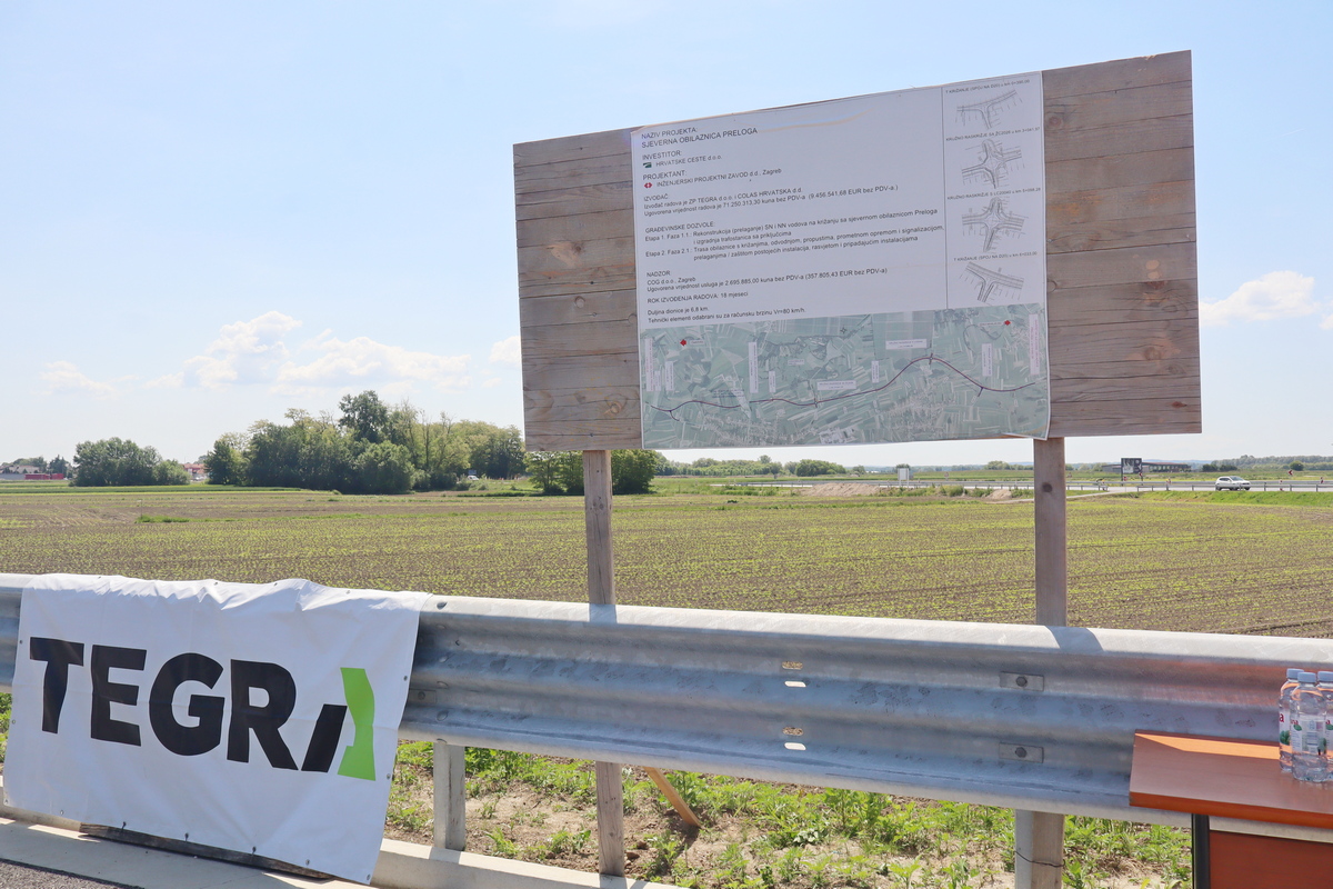 Radove na sjevernoj obilaznici Preloga dugoj oko 7 km, vrijedne oko 9,5 milijuna eura bez PDV-a, izvode tvrtke Tegra iz Čakovca i Colas Hrvatska iz Varaždina, a prema najavama, obilaznica bi trebala biti završena krajem lipnja.