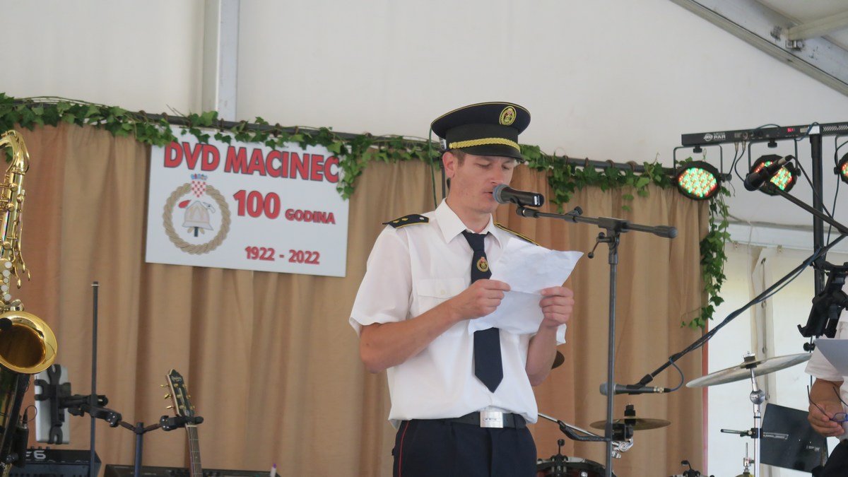 „Požari su oduvijek bili izazovi za čovjeka gdje je svatko mogao dokazati i izraziti svoj humani odnos i svoju nesebičnu pomoć za čovjeka, susjeda ili prijatelja. Taj humani odnos i nesebičnu pomoć osjetili su i davne 1922. mještani Macinca te su pokrenuli osnivanje Dobrovoljnog vatrogasnog društva Macinec, a ono je opstalo do danas zahvaljujući vrijednim i aktivnim članovima“, kazao je vatrogasni dočasnik prve klase Srećko Bratković koji se u svom izlaganju osvrnuo na dugu povijest društva-