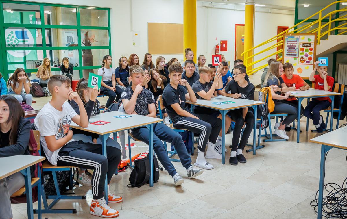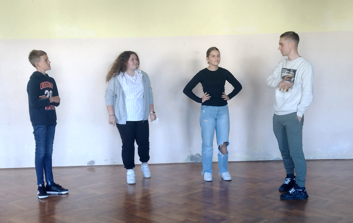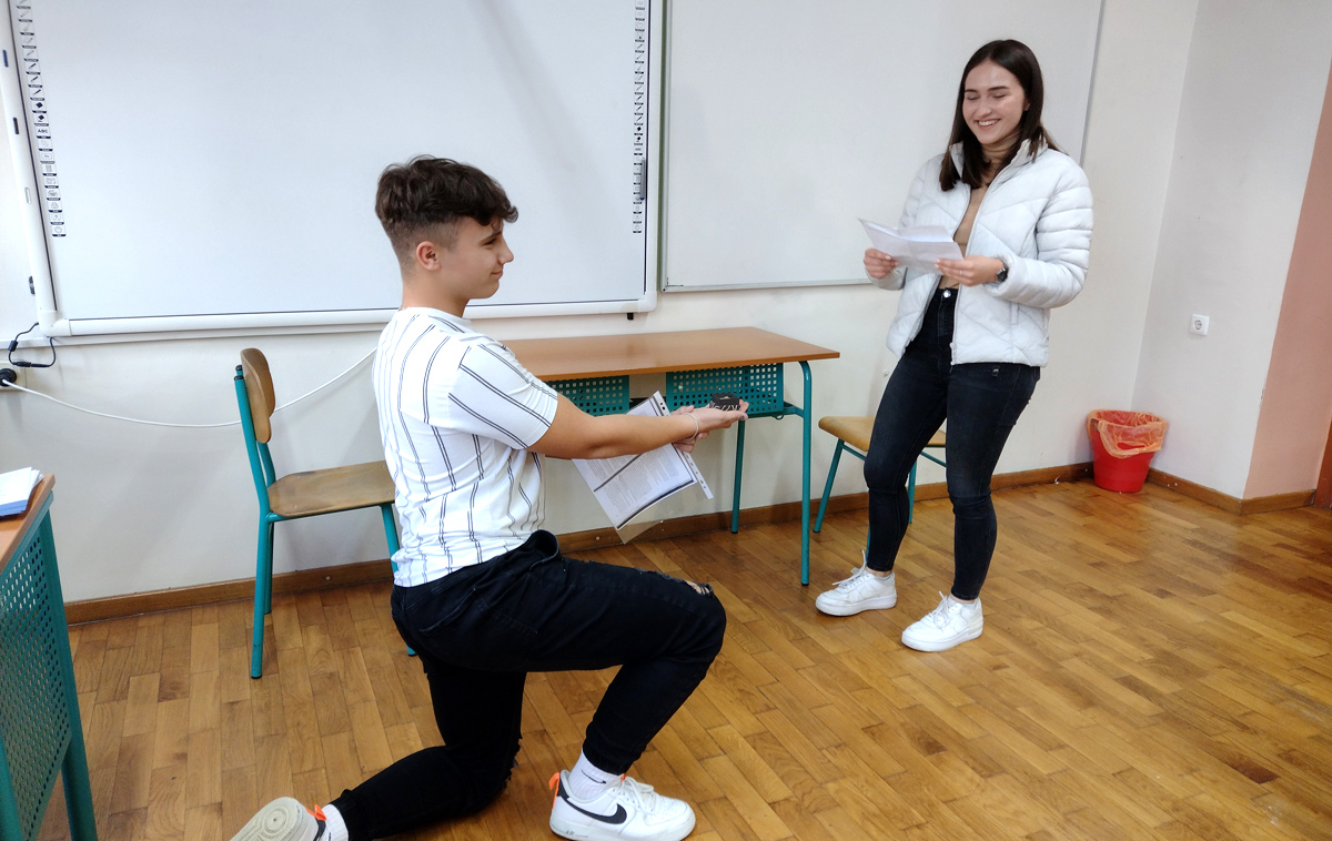 Filozofiju jedne obitelji u kontradiktornosti oca i sina kroz radionicu retelling romana Kalmana Mesarića “Poker Baltazara Bodora”, koju je vodio profesor Marijan Lazar, učenici trećeg razreda gimnazije su prepričavanjem, koje uključuje učenike usmeno i pismeno, obnovili priču, ali i nastavili je na nove situacije i događaje koje su samostalno stvorili i izrazili.