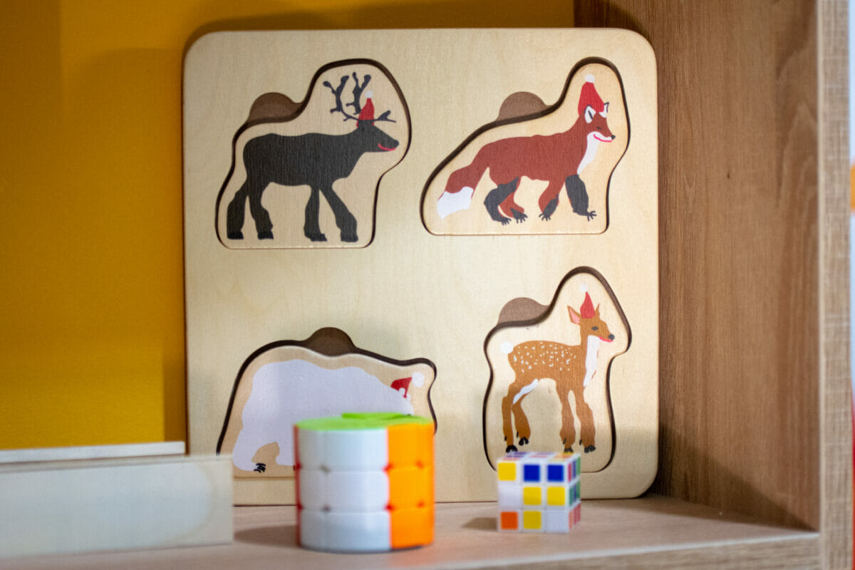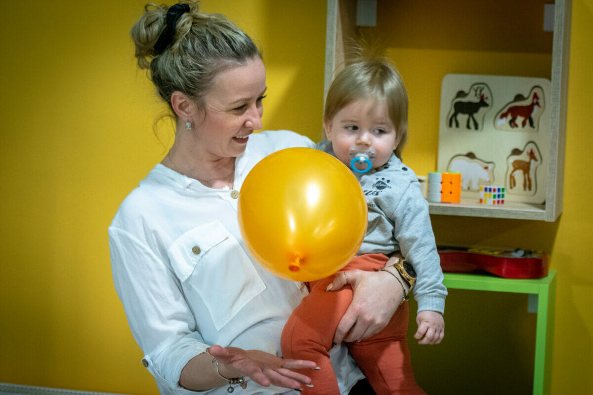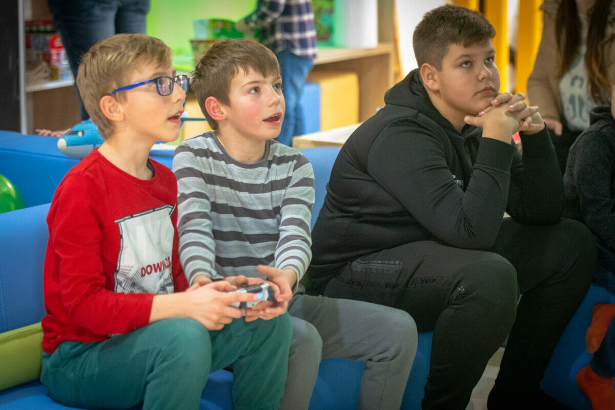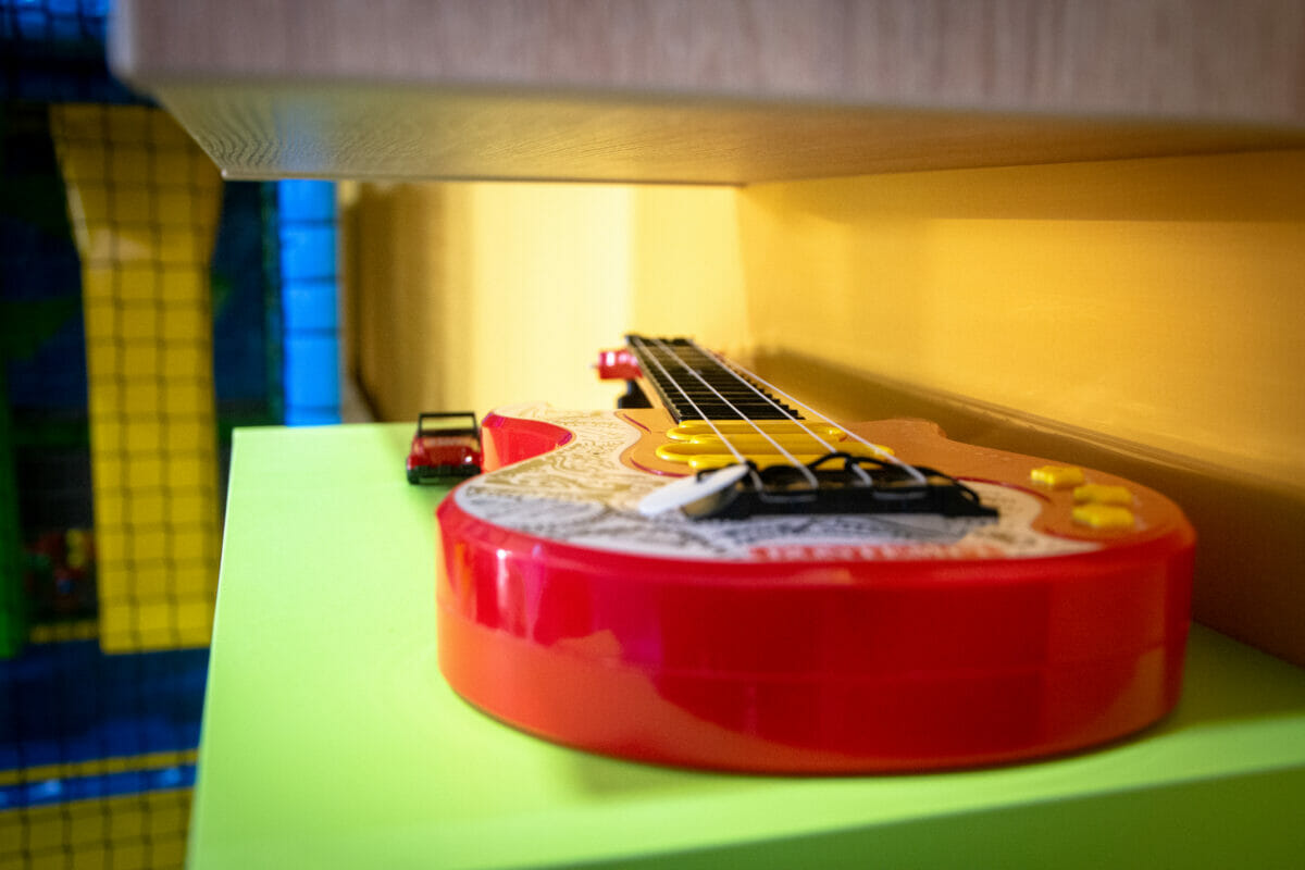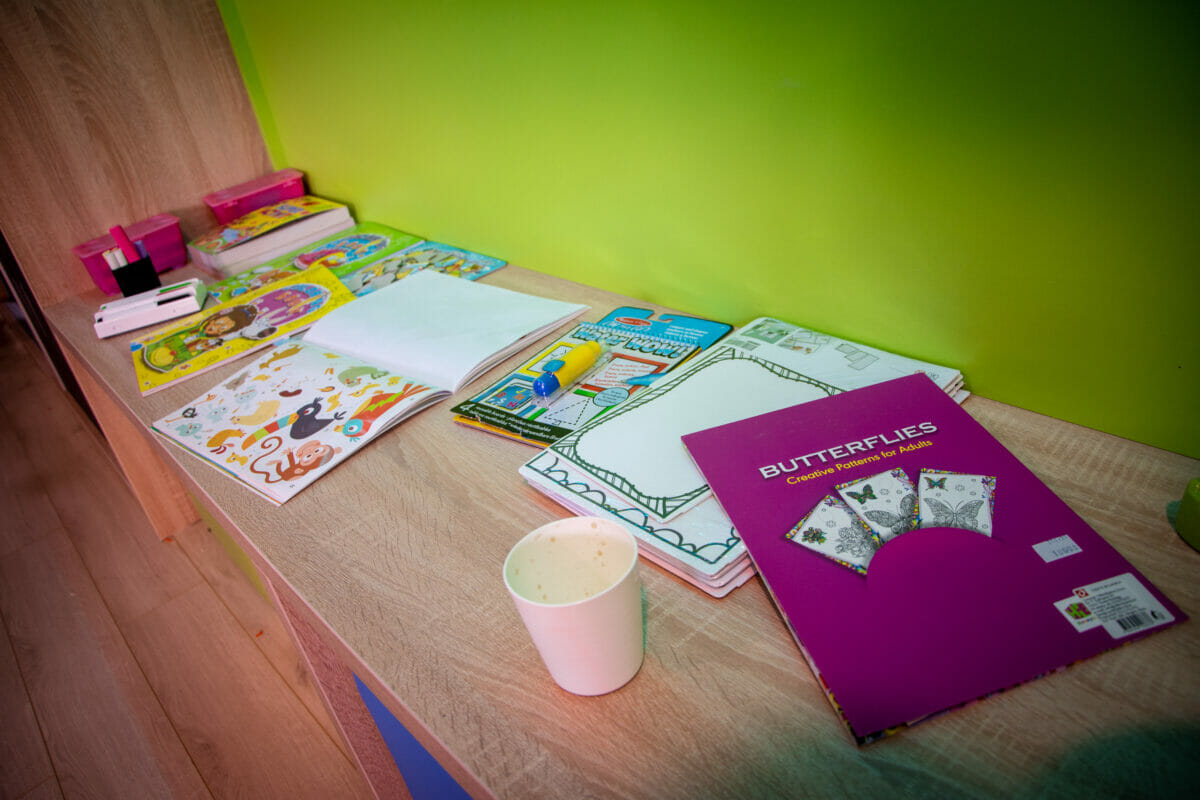 Ovaj vedri prostor od oko 100 kvadrata, sadrži i penjalicu-stijenu, kavez za igru s penjalicama, playstation, razne društvene igre, kocke, plišance, slikovnice i još mnogo toga. Prostor je uredila dizajnerica interijera Maja Huzjan iz Murskog Središća.