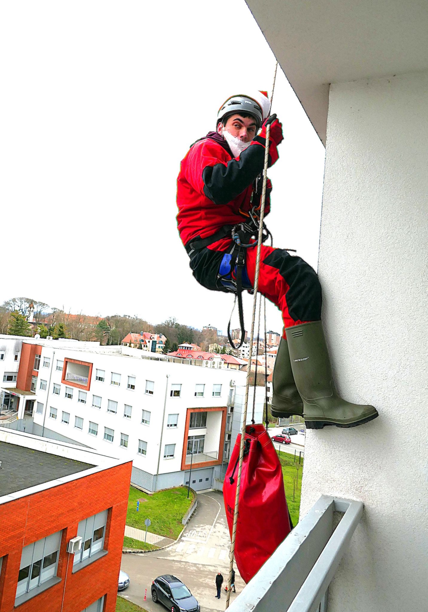Nije to bajka. Doista su se s krova ŽBČ užetima spustili članovi speleološke udruge, od kojih su mnogi i članovi HGSS-a, te obradovali male pacijente. Sve to, naravno, pod budnim okom medicinskog osoblja.