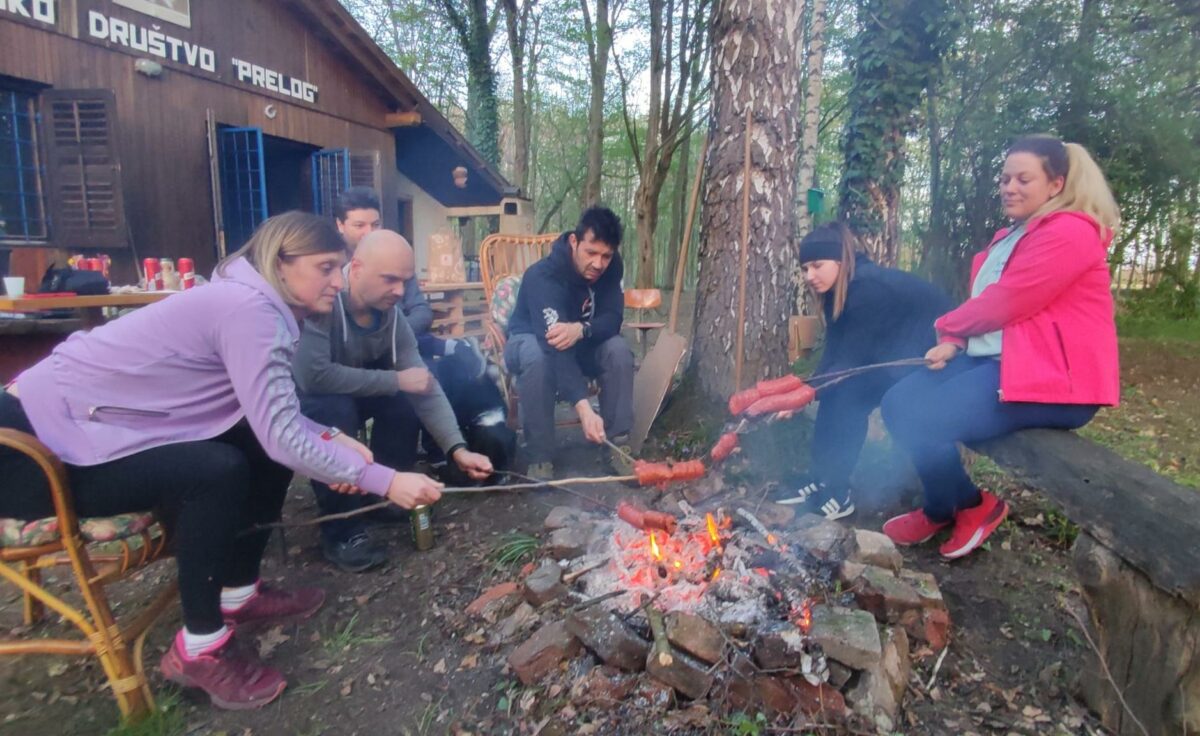 Planinari PD Prelog također su očistili teren uz Planinarski dom Prelog od lišća i orezali voćke pod motom „EKO akcija proljetnog čišćenja šuma“, te se na kraju podružili uz logorsku vatru i pečene jegere i piće.