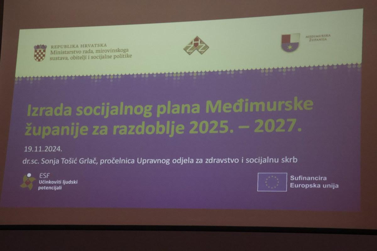 Danas je održana početna konferencija projekta u kojem će biti izrađen strateški dokument – socijalni plan Međimurske županije od 2025. do 2027. godine. Projekt, sufinanciran iz Europskog socijalnog fonda plus – program Učinkoviti ljudski potencijali, vrijedan je oko 62.000 eura, te će se njime izgraditi sustav jednakih mogućnosti, istaknuto je na početnoj konferenciji. Osnažit će se stručnjaci za socijalno planiranje, provedbu i praćenje socijalnog plana Međimurske županije s ciljem povećanja dostupnosti i ravnomjernom regionalnom razvoju socijalnih usluga na našem području.