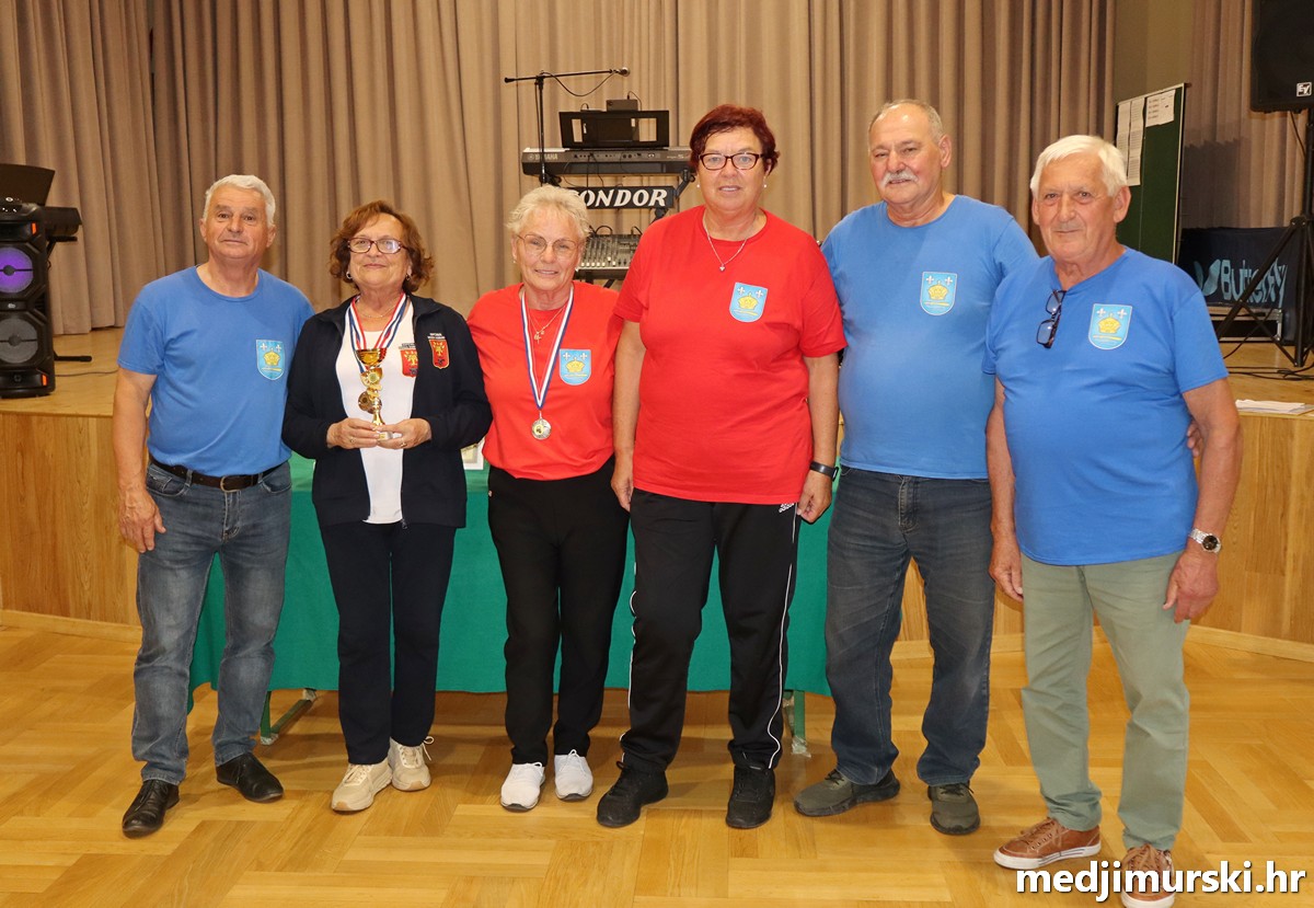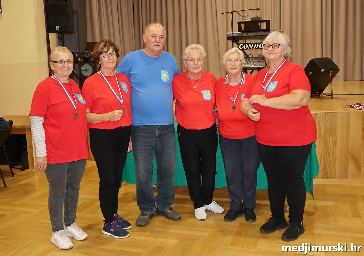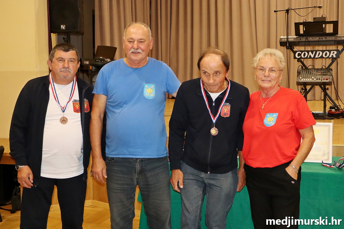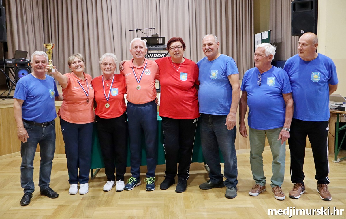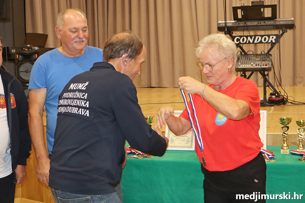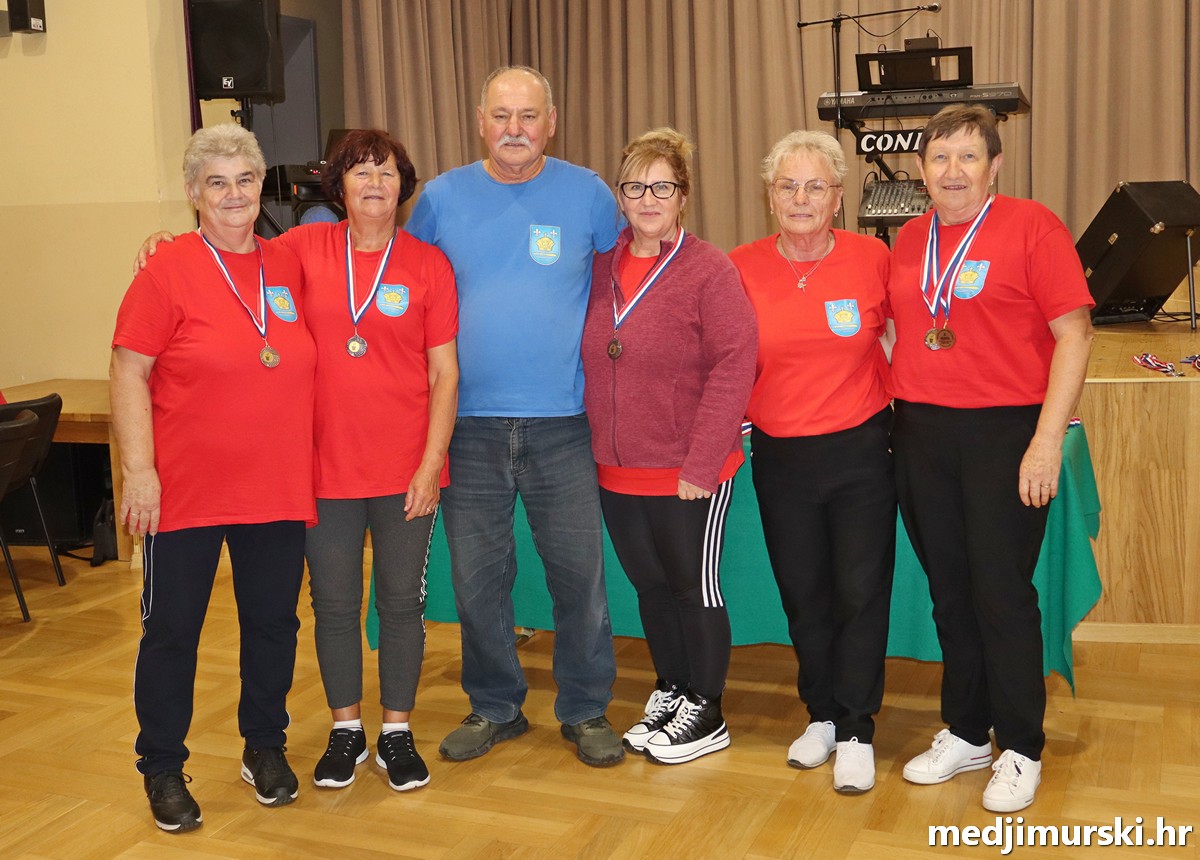 a na kraju su nagrade najboljim ekipama uz čestitke uručili predsjednik Podružnice umirovljenika Sveta Marija Antun Peter i tajnica Biserka Strbad. Svi su pobjednici dobili puse i medalje, a najbolje ekipe u ukupnom muškom i ženskom poretku i pehare.