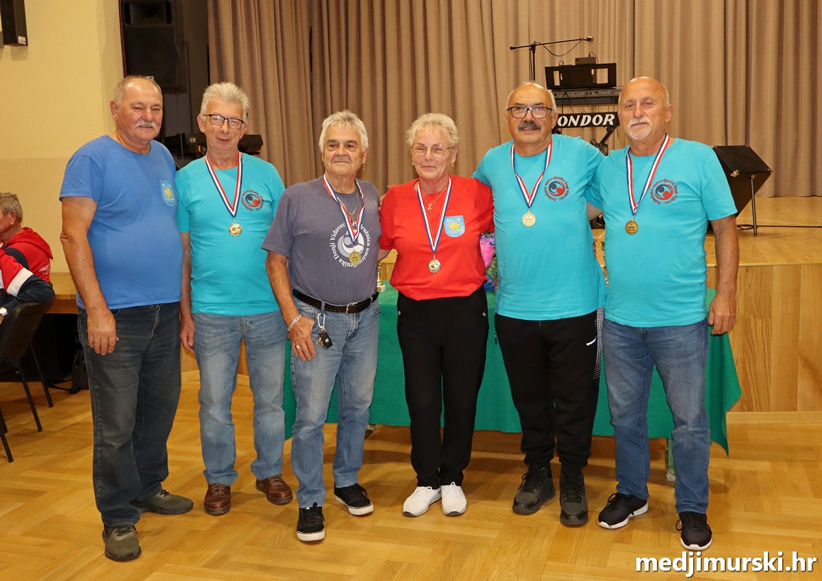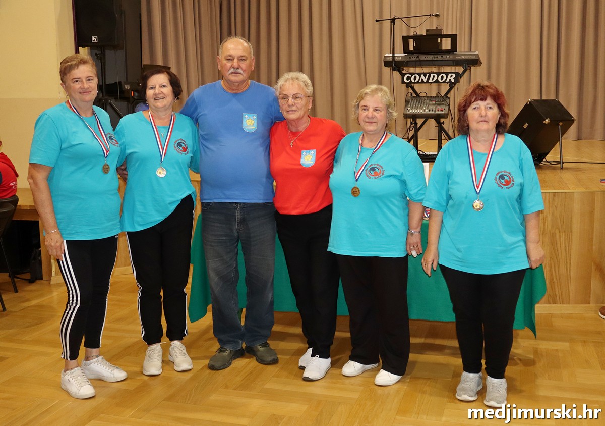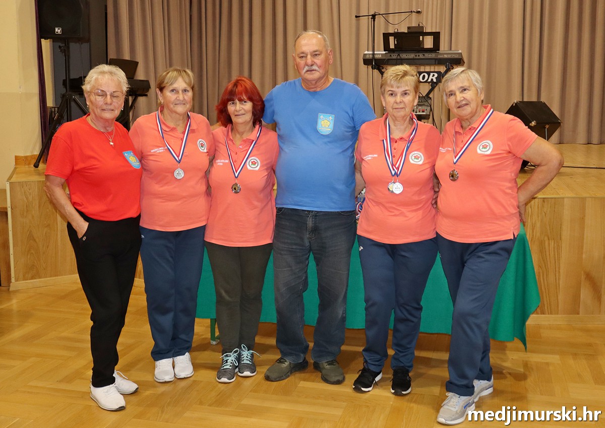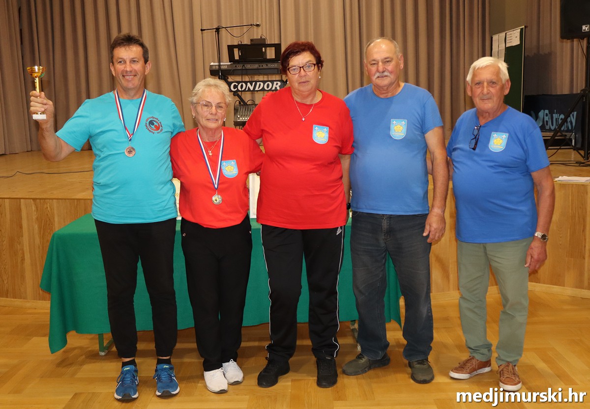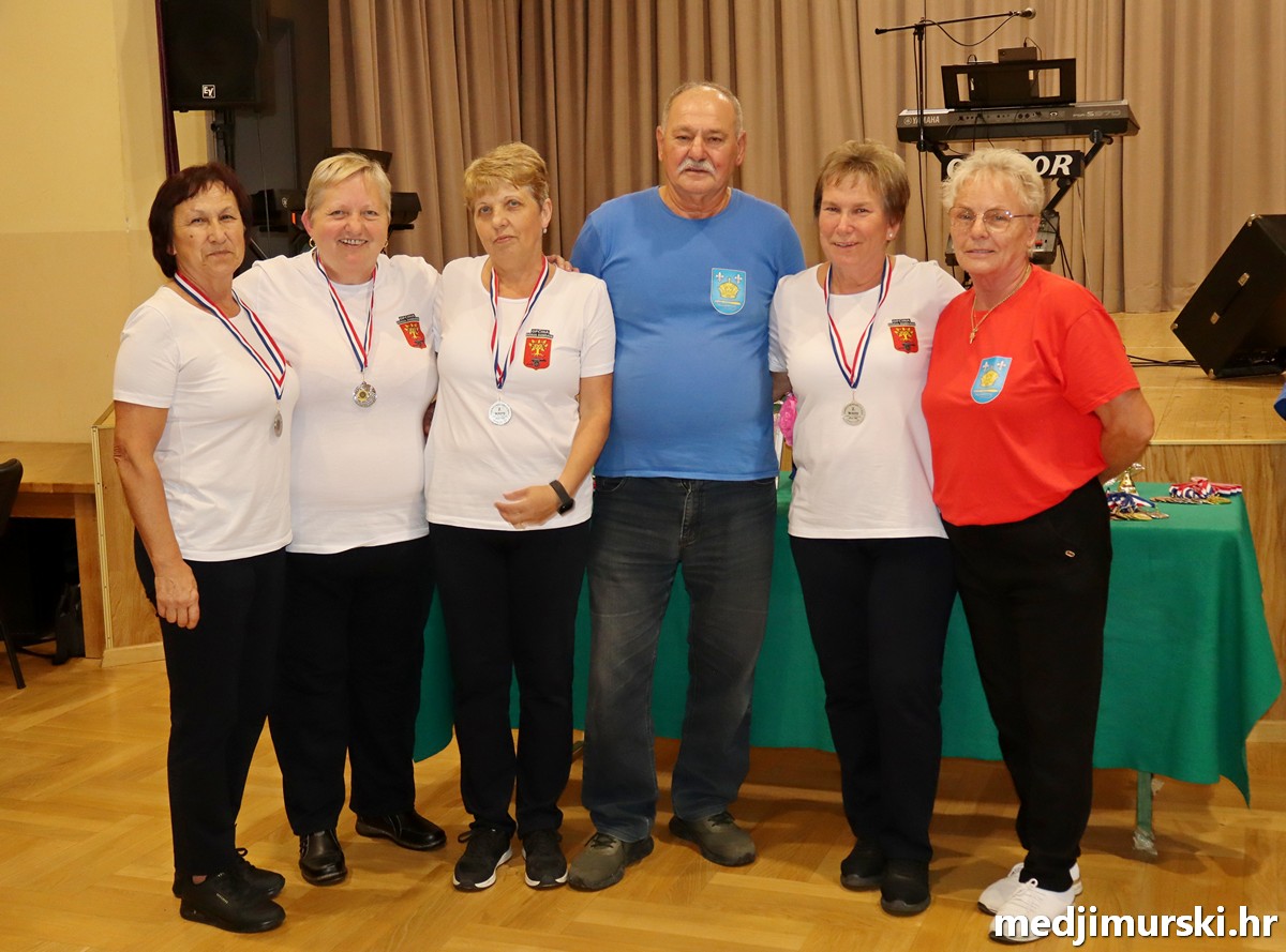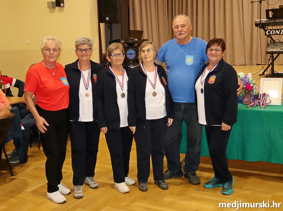 a na kraju su nagrade najboljim ekipama uz čestitke uručili predsjednik Podružnice umirovljenika Sveta Marija Antun Peter i tajnica Biserka Strbad. Svi su pobjednici dobili puse i medalje, a najbolje ekipe u ukupnom muškom i ženskom poretku i pehare.