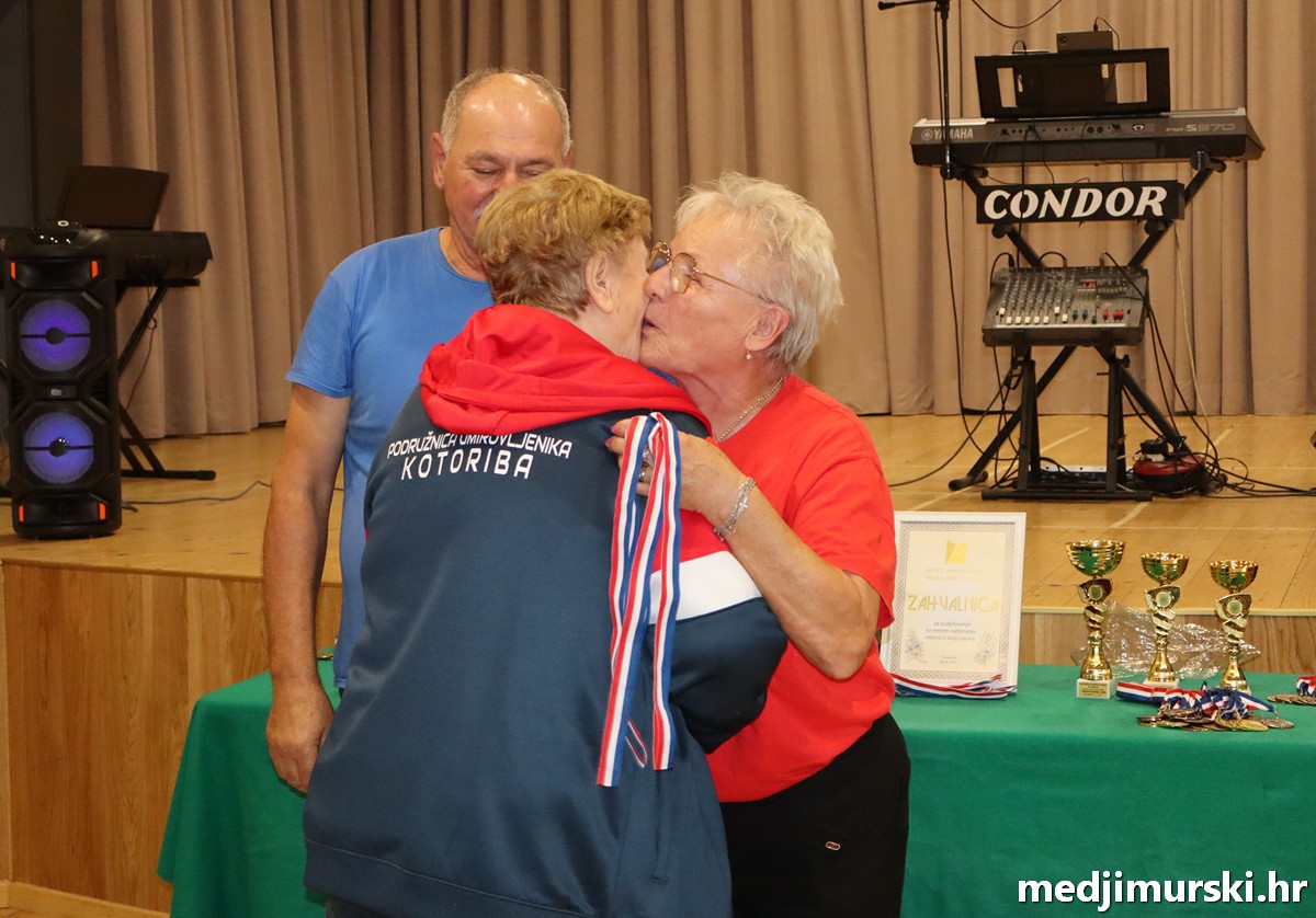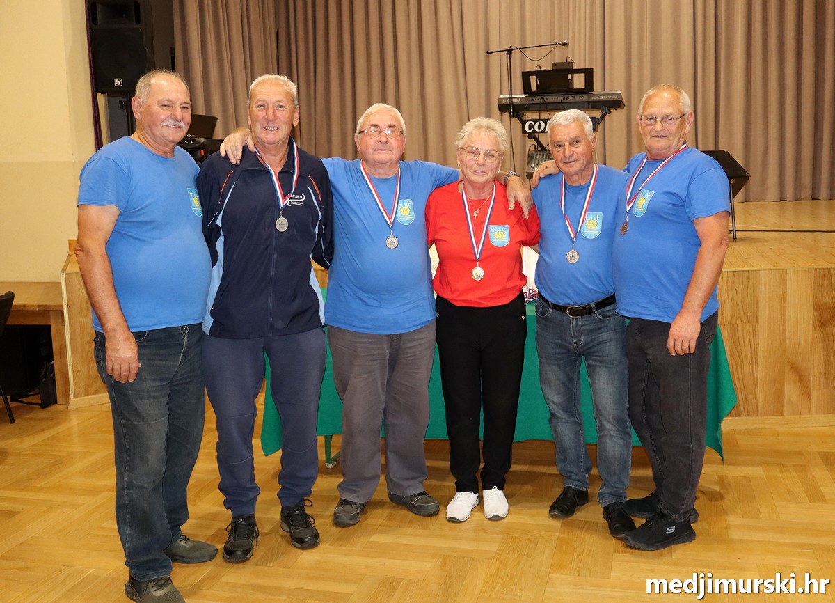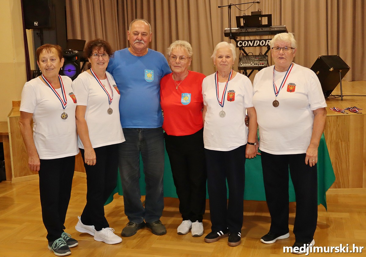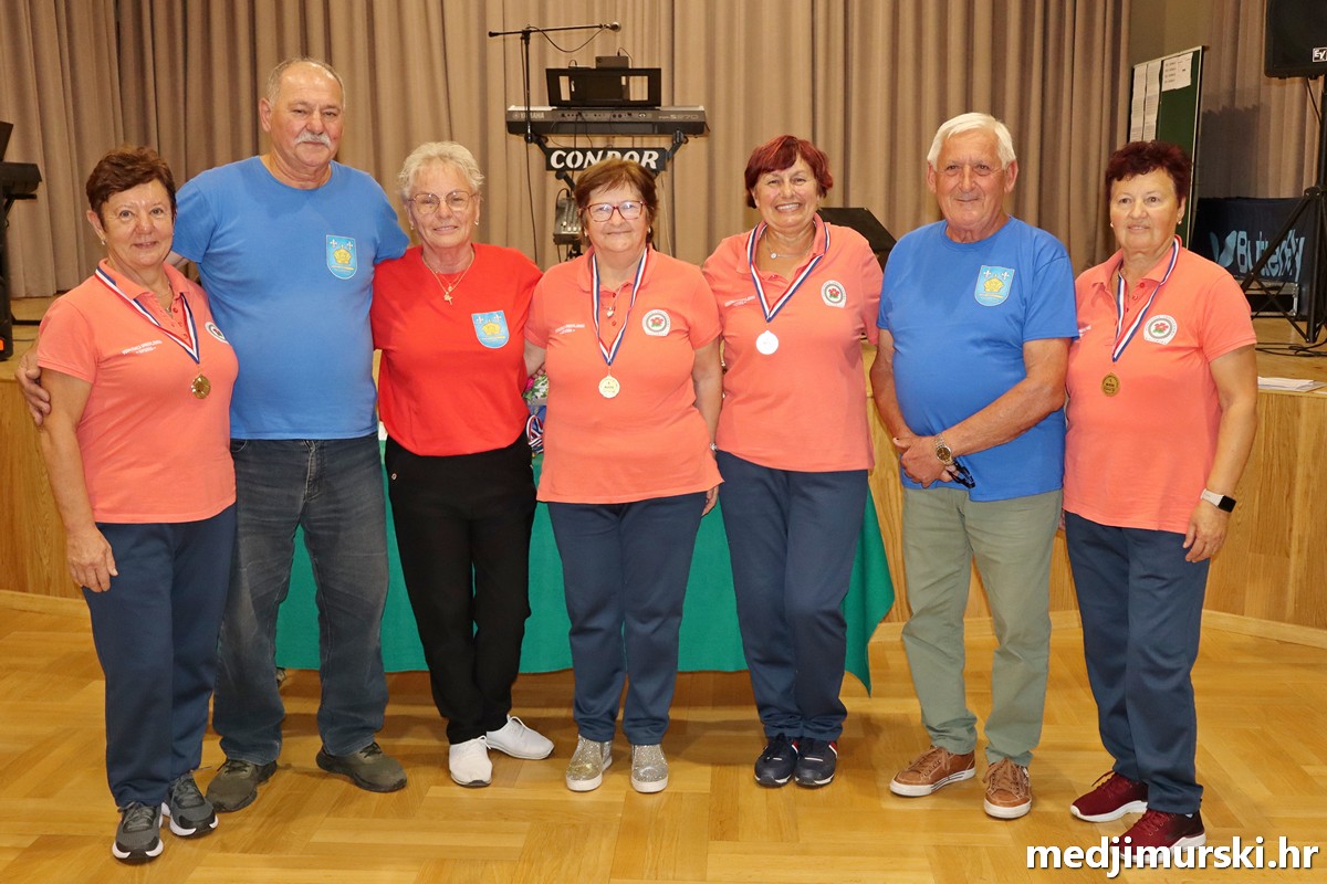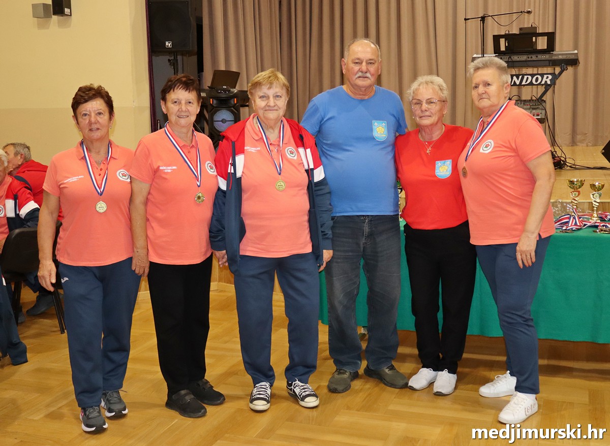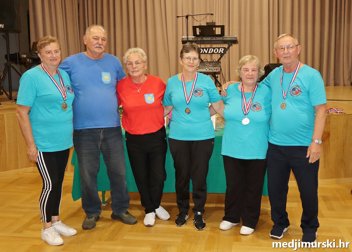 a na kraju su nagrade najboljim ekipama uz čestitke uručili predsjednik Podružnice umirovljenika Sveta Marija Antun Peter i tajnica Biserka Strbad. Svi su pobjednici dobili puse i medalje, a najbolje ekipe u ukupnom muškom i ženskom poretku i pehare.