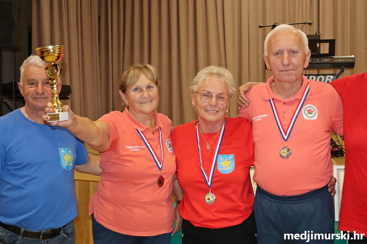 Ekipno, najbolja ženska ekipa bila je Podružnica umirovljenika Kotoriba, 2. mjesto osvojile su umirovljenice Svete Marije, 3. Donje Dubrave i 4. Donjeg Vidovca. Najbolja muška ekipa također je bila ona iz Podružnice umirovljenika Kotoriba, 2. mjesto osvojili su umirovljenici Svete Marije, 3. Donjeg Vidovca i 4. Donje Dubrave.