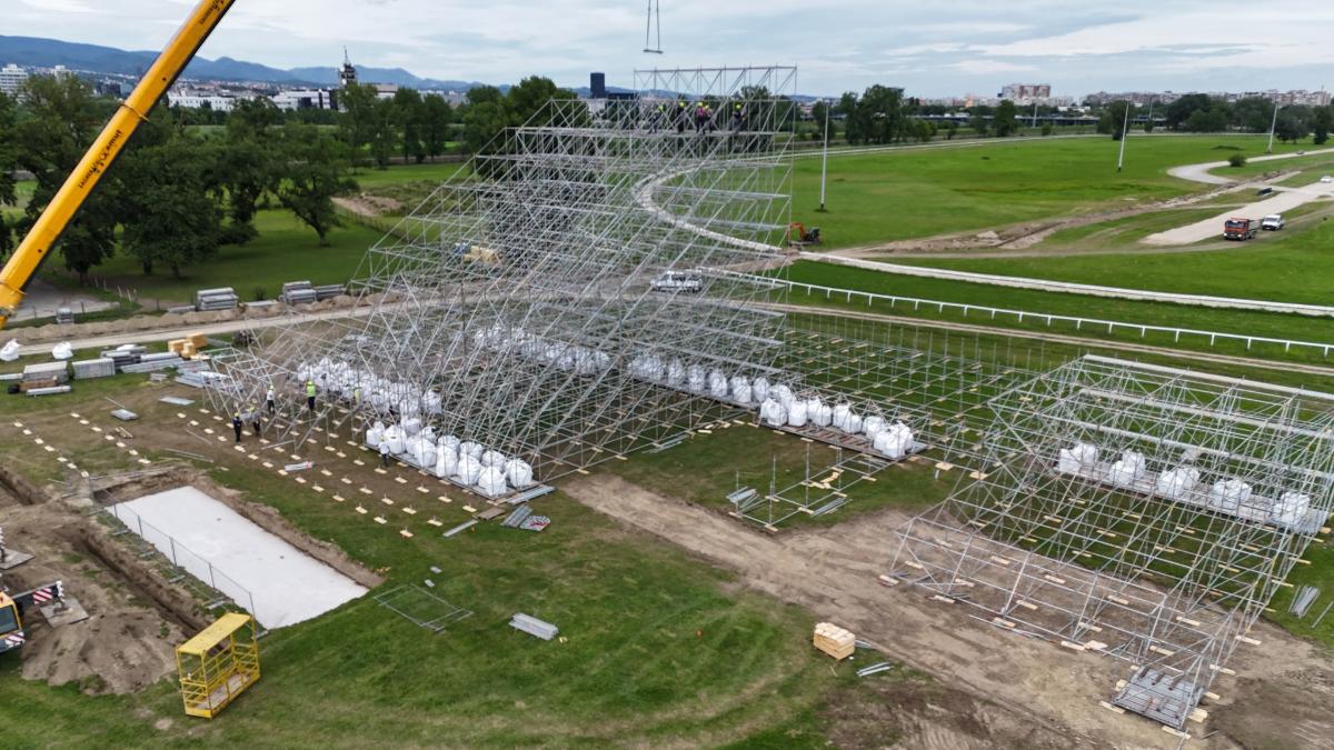 Marko Perković Thompson objavio je nove fotografije s Hipodroma, gdje se intenzivno nastavljaju pripreme za njegov veliki koncert. Ovoga puta podijelio je i snimke iz zraka koje prikazuju kako pozornica već poprima prepoznatljiv oblik.