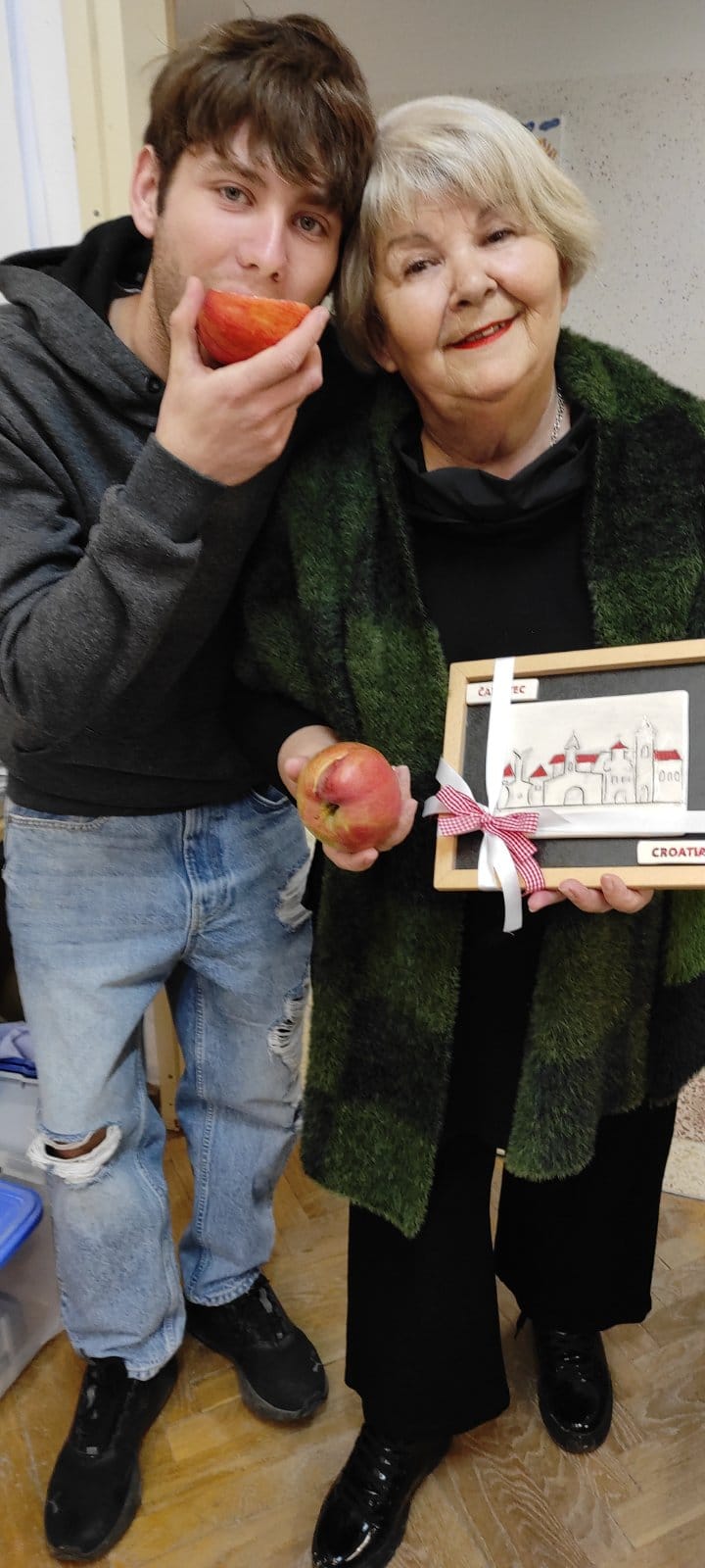 Učinili su to supružnici Maja i Nikola Poje. A nova radost i veselje ovih je dana stigle iz Vratišinca odakle je Centru gospodin Zoran Lovrek, vlasnik voćnjaka Agre, donirao 100 kilograma slasnih jabuka. Nagrađeni su i učenici koji su sudjelovali na ovogodišnjem Supertalentu škole. Učenici OOS 1 i OOS 11 sa svojim učiteljicama Irenom Živko i Anitom Vidović počastili su se vrućim napitcima u kafiću Park’s. pa im se stoga zahvaljuju na nagradama, ljubaznosti i toplini!