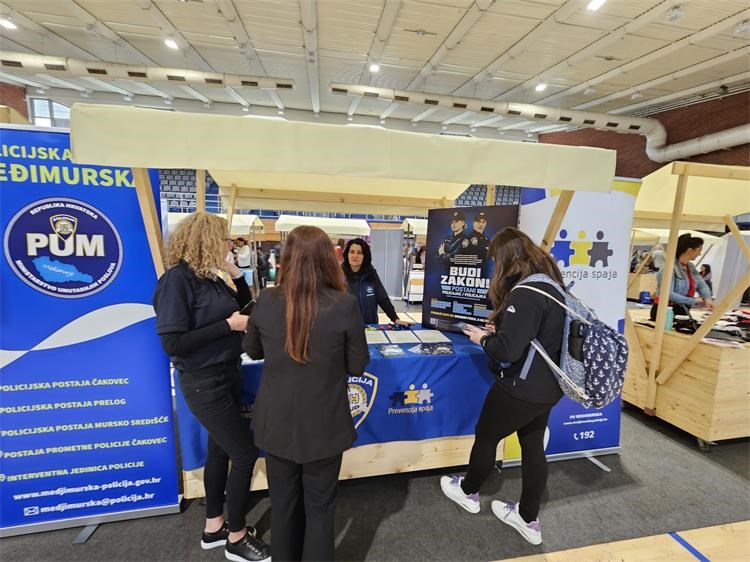 Predstavnicima međimurskih strukovnih škola pridružili su se i međimurski plavci koji su svim posjetiteljima predstavili policijski poziv putem nacionalne kampanje ”Postani policajac/policajka”. Mladi su imali priliku razgovarati s policijskim službenicama te se pritom upoznati s policijskim zanimanjem.