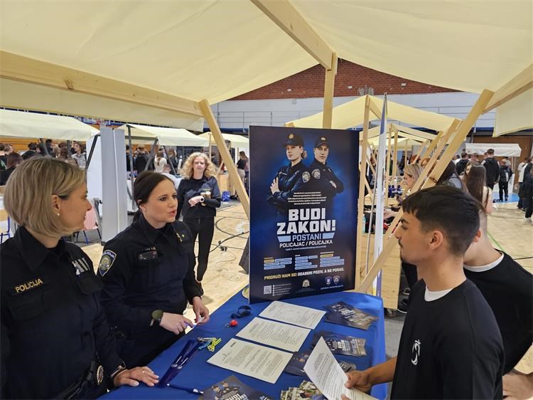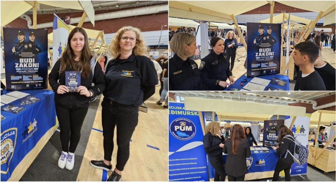 Na informativnom punktu međimurske policije predstavljeni su Natječaj za upis polaznika/polaznica u Program srednjoškolskog obrazovanja odraslih za zanimanje policajac/policajka u 2025./2026. godini te Natječaj za upis učenika u III. razred Policijske škole “Josip Jović” za stjecanje strukovne kvalifikacije za zanimanje policajac/policajka u 2025./2026. godini te su posjetitelji upoznati s važnom informacijom kako od ove godine mogu podnijeti prijavu i putem sustava e-Građani.