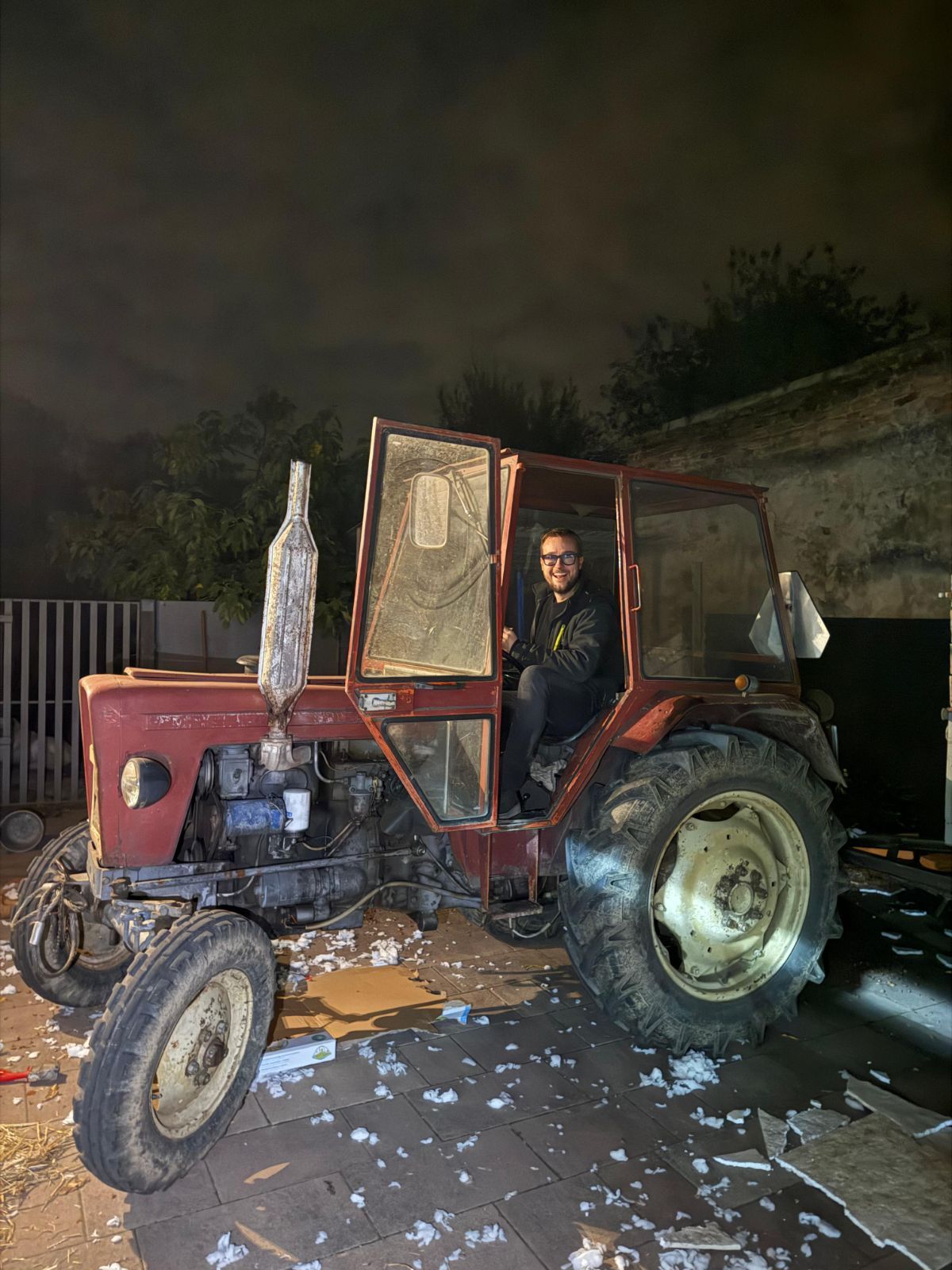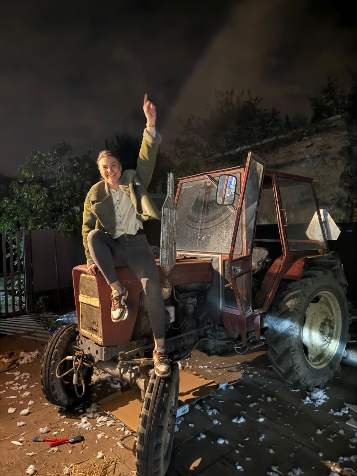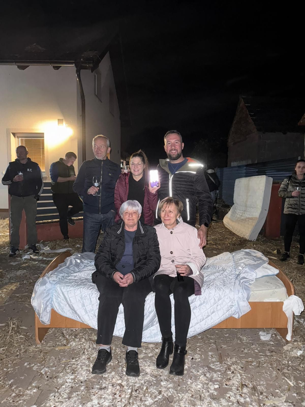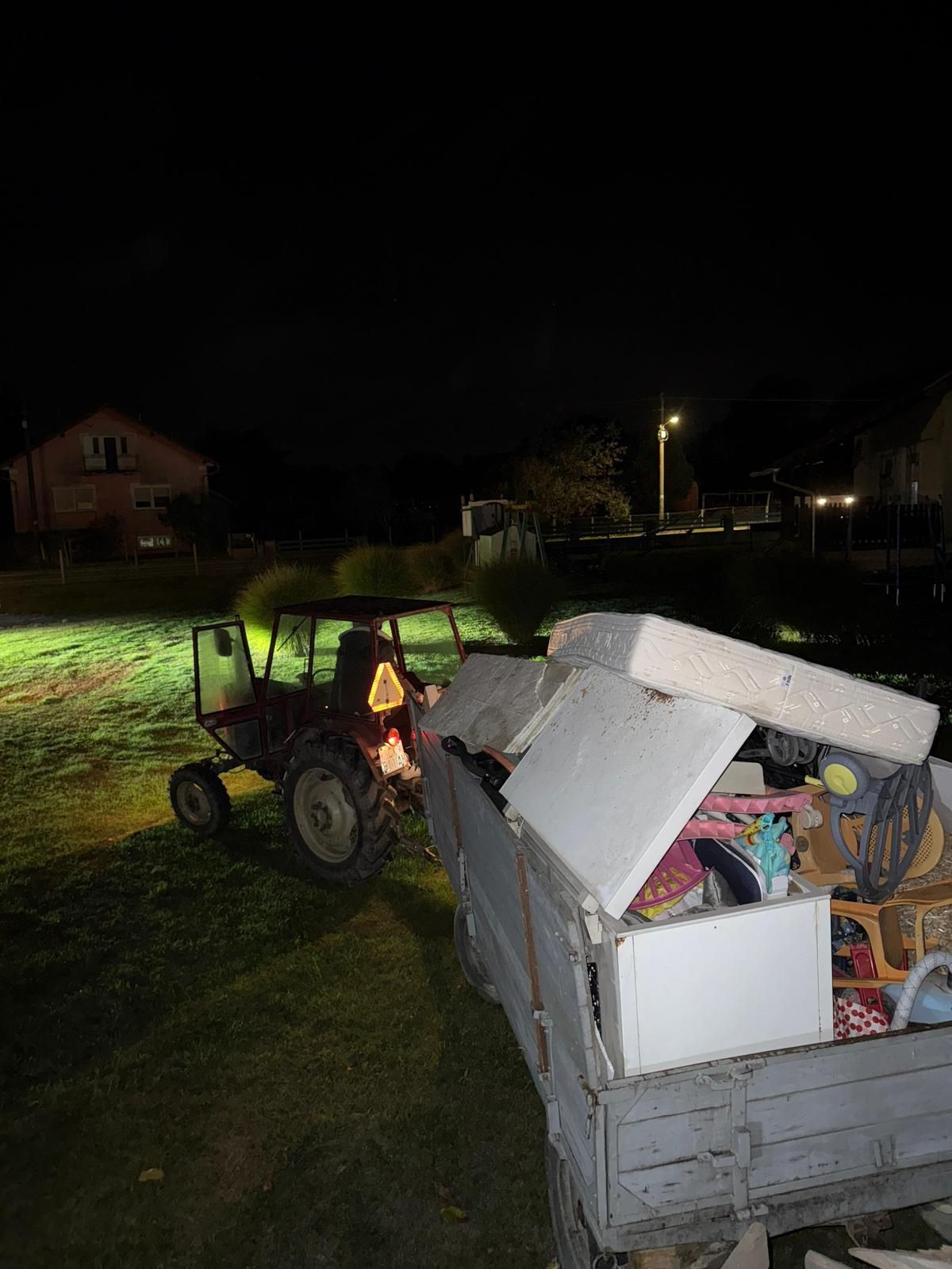 Dva traktora i tri prikolice bila su puna do vrha – vozile su se bale slame, krevet i madrac koji će, kako kažu, “svjedočiti prvoj bračnoj noći”. Uz to, dopremljen je i veliki zamrzivač “za se meso koje bu v KTCu de bu i vjenčanje na akciji”, dječja kolica “za budućnost”, stol i stolice, perje i još mnogo toga “za herbiju”.