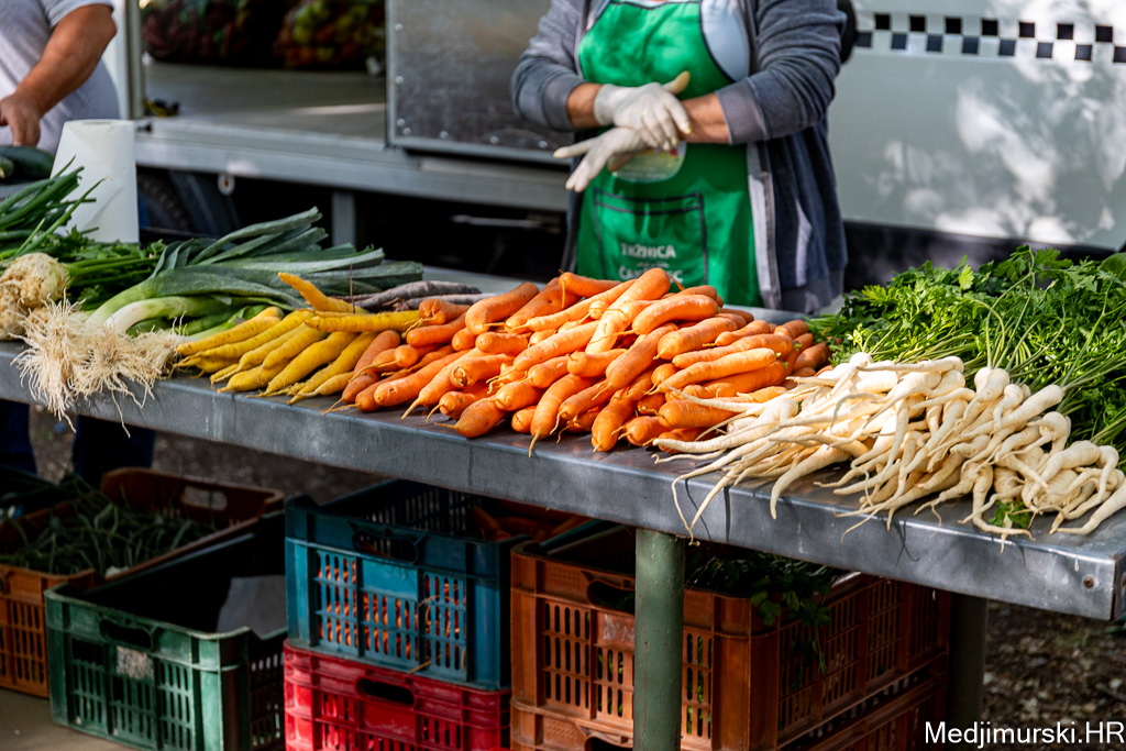 Mladi krumpir je po 1 euro, a rajčica od 1 do 3 eura kg. Kilogram celera je po 1 eura, peršina 2 eura kg, mrkve po 2, dok je batat nuđen po 1,5 eura kg.
