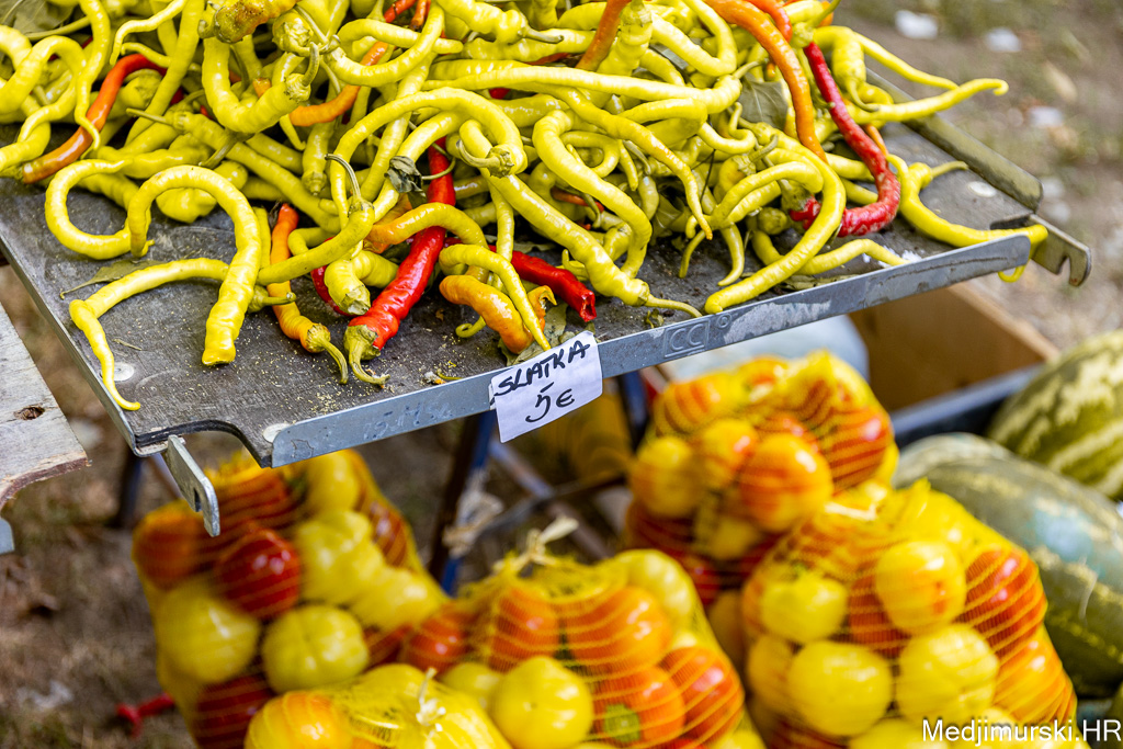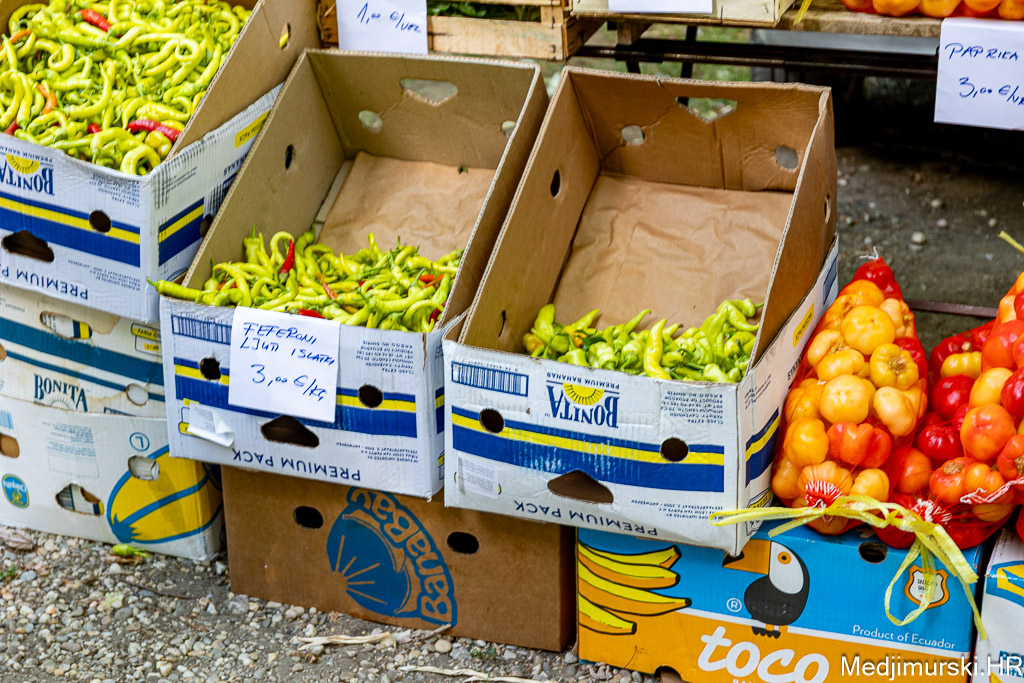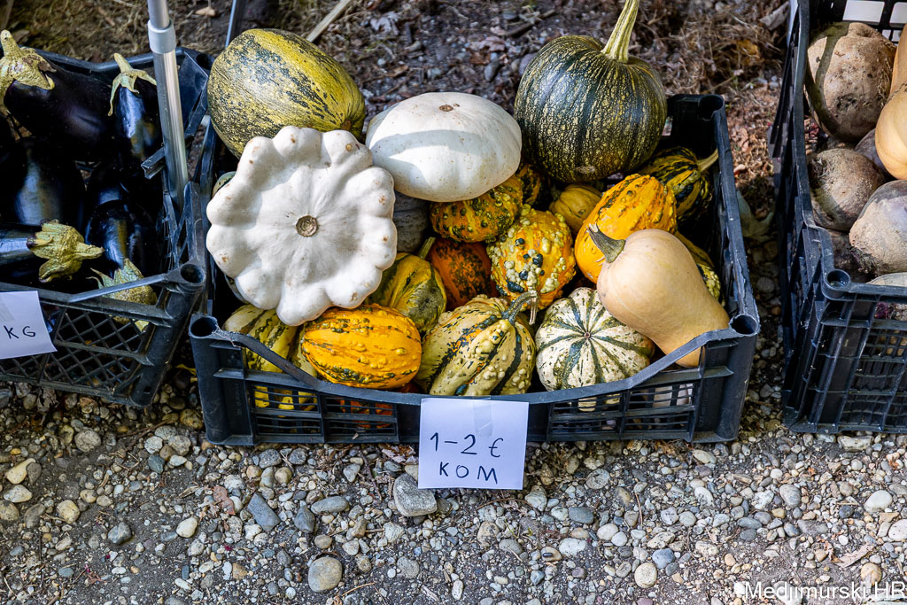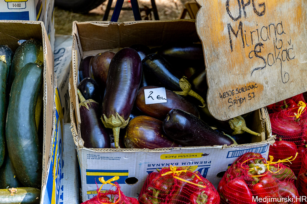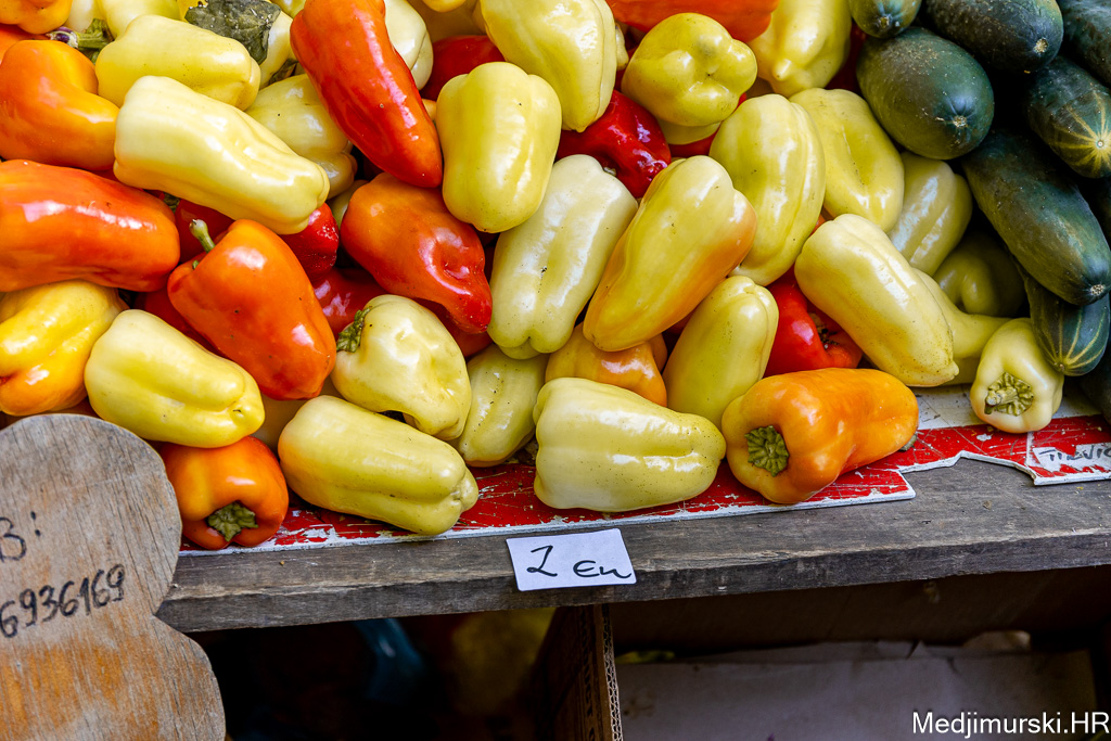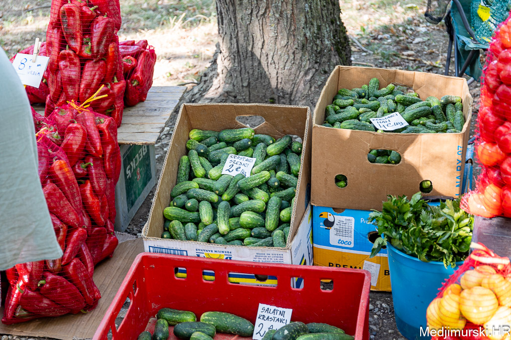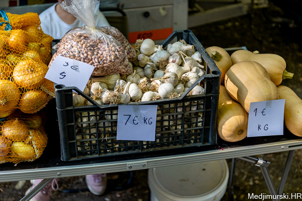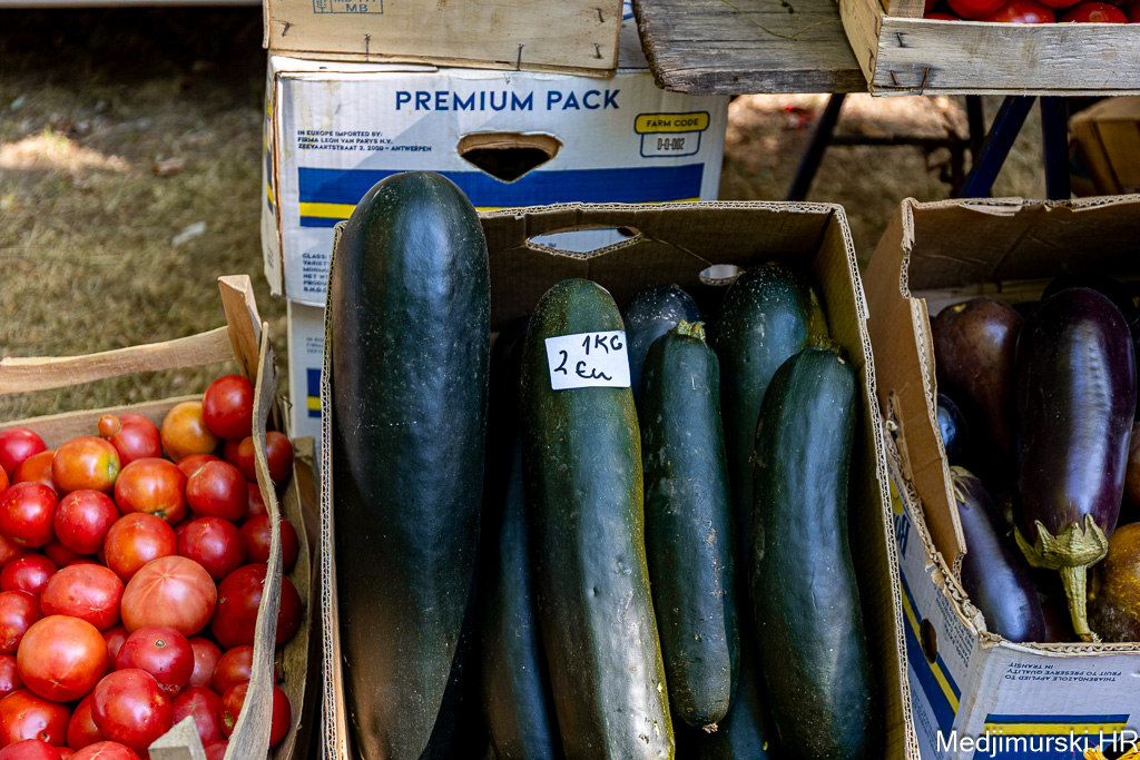 Patliđan je nuđen po 2 eura komad. Paprika različite veličine, boje i sorte, mogla kupiti od 1,5 do 3 eura kilogram, a krastavci, ovisno o veličini od 1,5 do 5 eura kg. Domaći češnjak je prodavan po 6 i 8 eura kilogram, a luk po 1 euro kg. Tikvice zelene bile su po 2 eura, a ukrasne suhe po 1 i 2 eura komad.