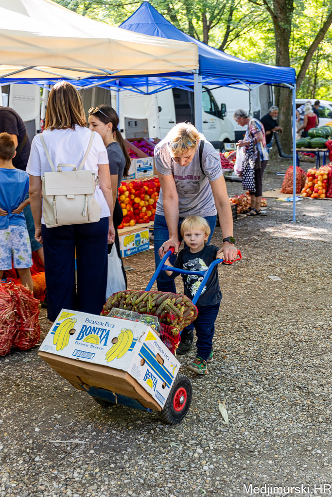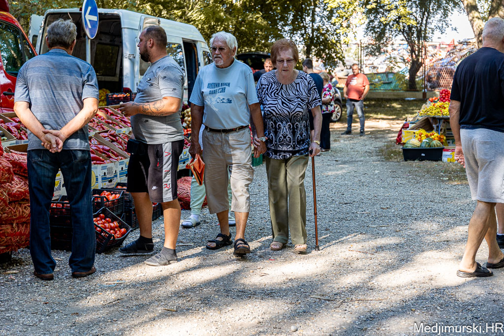 I danas bilo puno kupaca i prodavača na čakovečkom sajmu srijedom. Temperatura ugodnih 25 stupnjeva Celzijusa samo je pogodovala trgovanju, ali i uživanju za stolovima kod pečenjarnica.