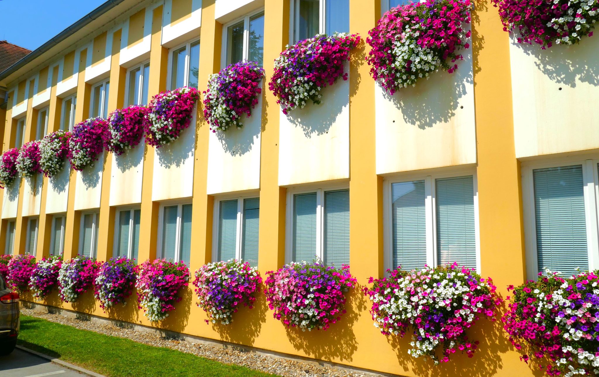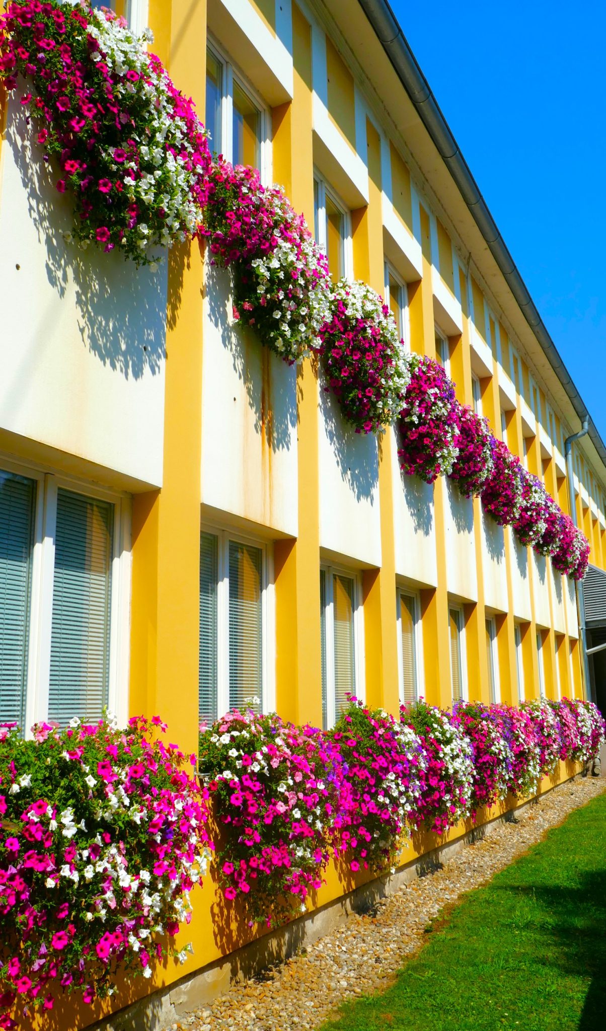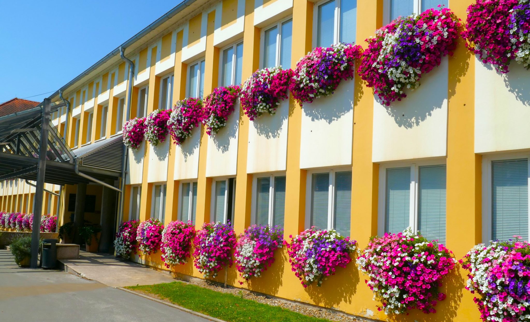 Ovih ljetnih dana pročelje zgrade Međimurske županije doista lijepo izgleda. Sa svakog prozora spuštaju se slapovi raznobojnih surfinija, dobro njegovanih i zalijevanih. I već nekoliko godina je to tako. U Županiji saznajemo da je ideju za postavljanje tegli sa cvijećem na prozore dala Petra Strahija, mag.ing., koja radi u Odsjeku za odnose s javnošću i protokol u Službi za poslove župana.
