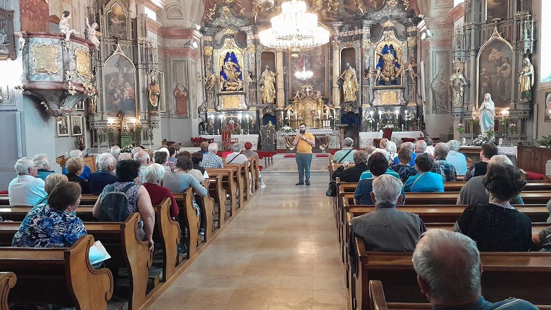 Nakon dolaska i kratkog upoznavanja s direktoricom Turističke zajednice Petrom Bobić, skupina je posjetila crkvu svetog Jakoba ap.st. gdje ih je dočekao župnik vikar Dominik Cestar, koji je posjetitelje oduševio predstavljanjem crkve i župe. Posjetitelje iz Prekmurja posebno je oduševila činjenica da je jedan od župnika Župe sv. Jakoba Starijeg u Prelogu, Ivan Kuhar, porijeklom iz Prekmurja, a kršten je upravo u Puconcima.