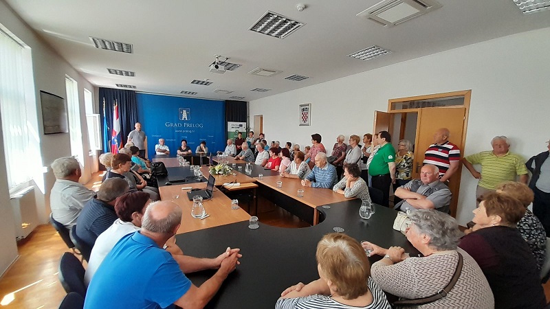 Nakon posjeta Muzeju Croata Insulanus Grada Preloga, gdje je ravnateljica Iva Kožnjak oduševljenim posjetiteljima iz Slovenije predstavila muzejski postav i aktivnosti Muzeja, skupinu je u Gradskoj vijećnici dočekao i u ime Grada Preloga pozdravio Željko Sokač iz Odsjeka za poslove gradonačelnika te im je, uz kratko predstavljanje povijesti i sadašnjosti Grada, poželio ugodan boravak u Prelogu.