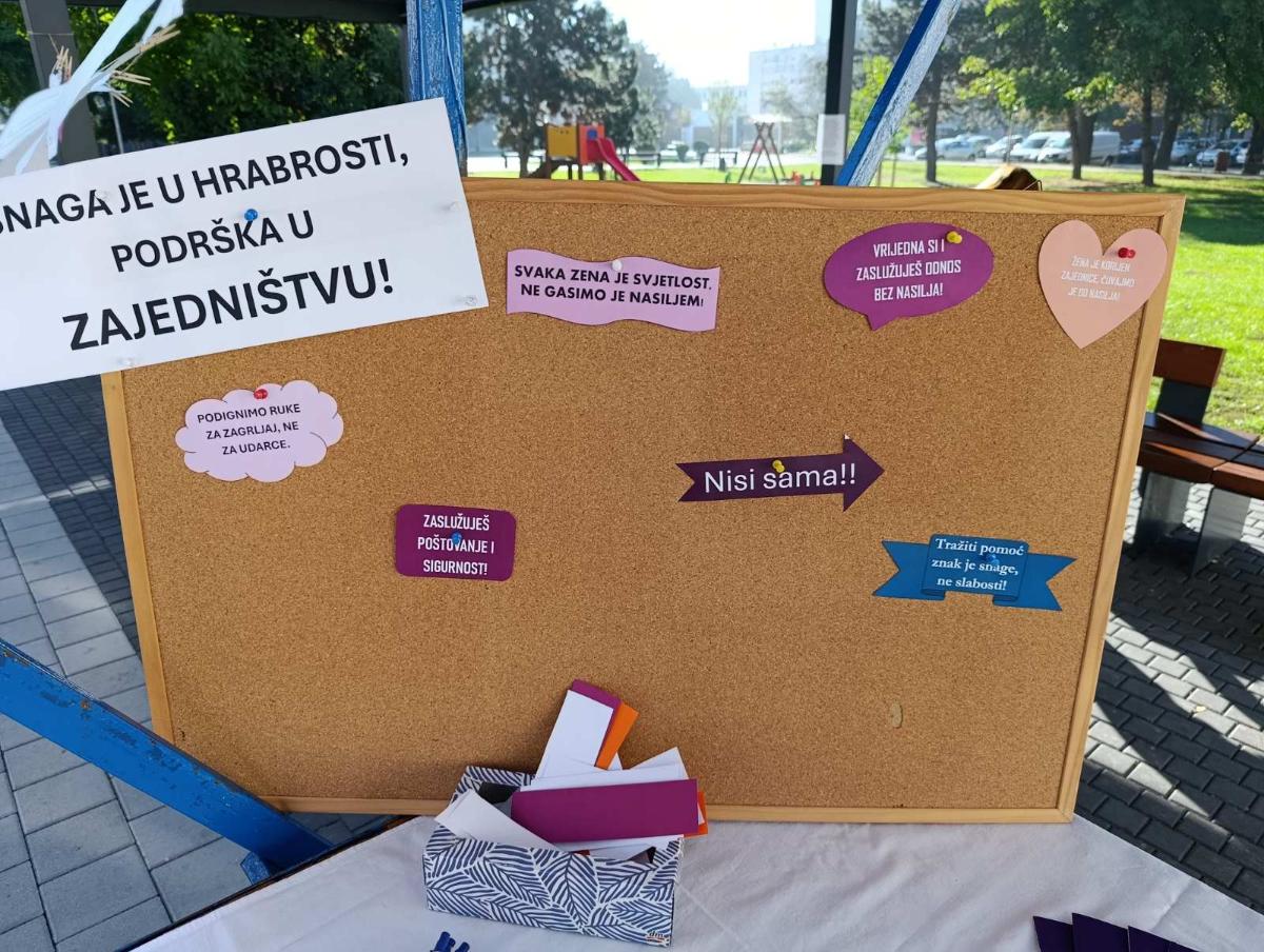 Svoje aktivnosti na promotivnom štandu kod Doma za starije i nemoćne osobe u Čakovcu provode pod sloganom: „Reci ne nasilju – Svaka žena je svjetlost, ne gasim je nasiljem“. Njihova glavna poruka je da rodno uvjetovano nasilje nije privatna stvar pojedinca, već se radi o opće društvenom problemu. Zbog toga traže odlučnije postupanje institucija društva u zaštiti žrtava, suzbijanju nasilja u obitelji, kao i bilo kojeg oblika nasilja.