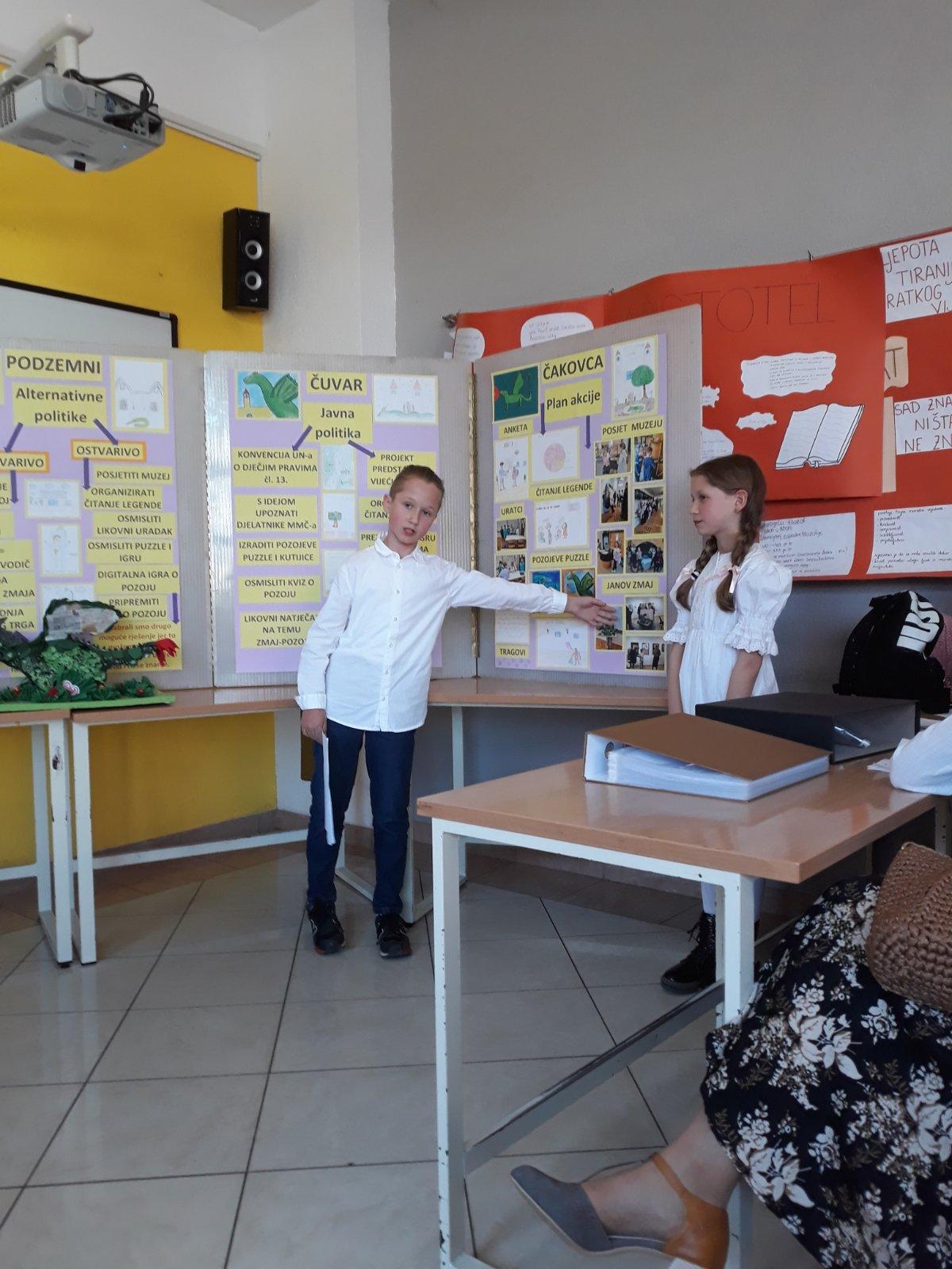 Ponosni na naše Male građane javljamo da su na 13. županijskoj smotri iz Građanskog odgoja i obrazovanja — Projekt građanin, održanoj 4. 4. 2025., izvrsno predstavili i obranili projekt Vječiti podzemni čuvar Čakovca.