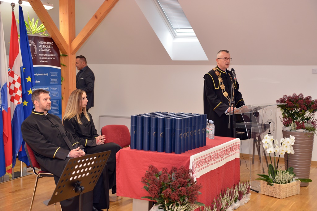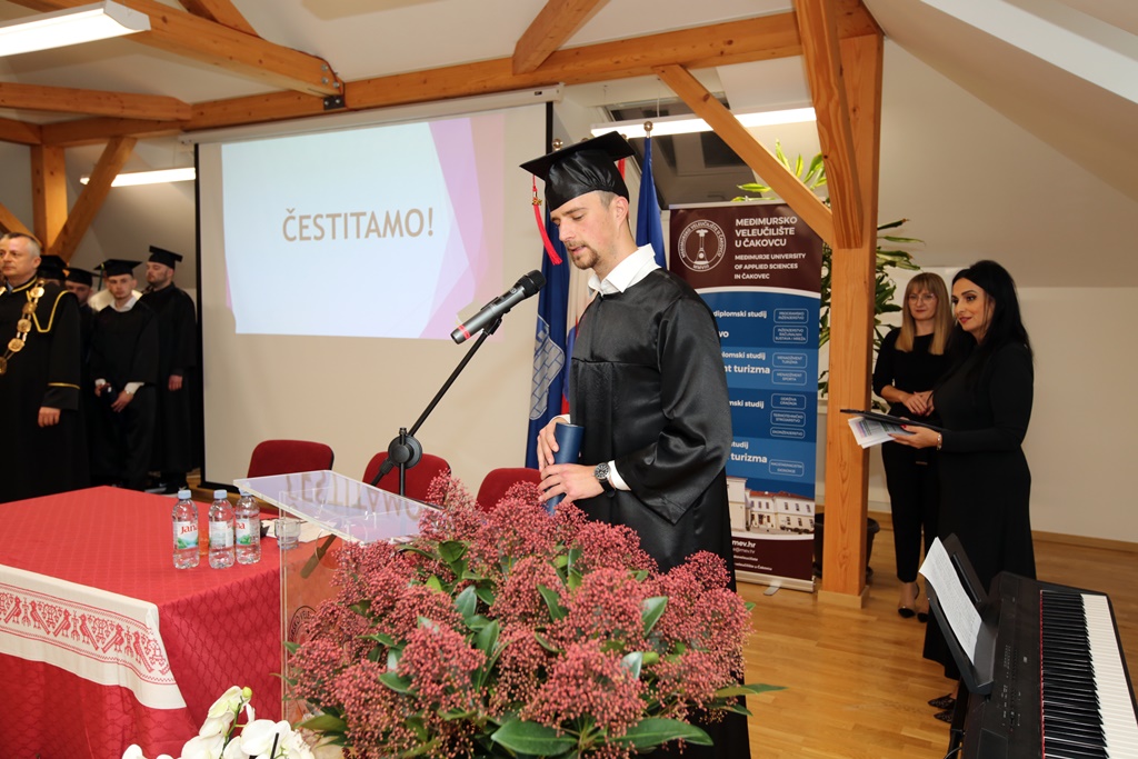 Uime studenata prisutnima se obratila Ivana Okreša, rekavši kako je lijepo s diplomom u rukama i titulom akademskog građanina prisjetiti se prvih koraka na Veleučilištu u Čakovcu.