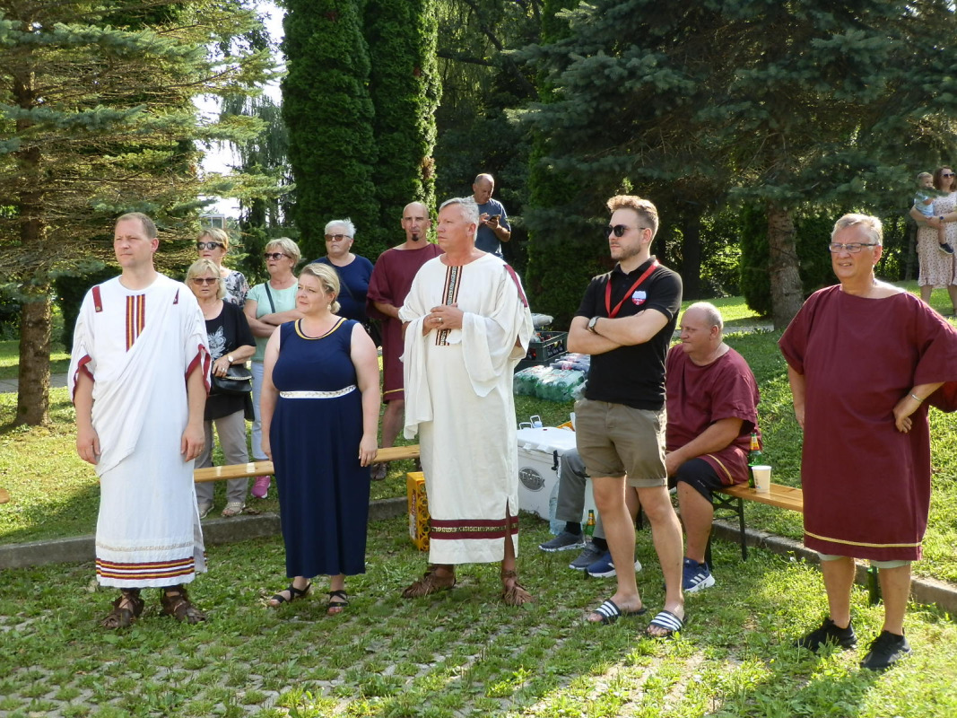 Glumci amateri, domaći i strani odjenuli su i na sebe stavili predmete u kojima su izgledali poput Rimljana koji su u 1. stoljeću nakon Krista pohodili ovaj dio zemlje i što više podigli Grada Halicanum čiji se zemljani ostatci nalaze u zaštićenom području u Svetom Martinu na Muri. Sve je bilo lijepo, prelijepo i pitomu, sve je bilo na mjesto i toliko iskonsko da je svaki Rimljanin ili Rimljanka izgledao onako kako smo to gledali u slikama i drugim umjetničkim djelima.