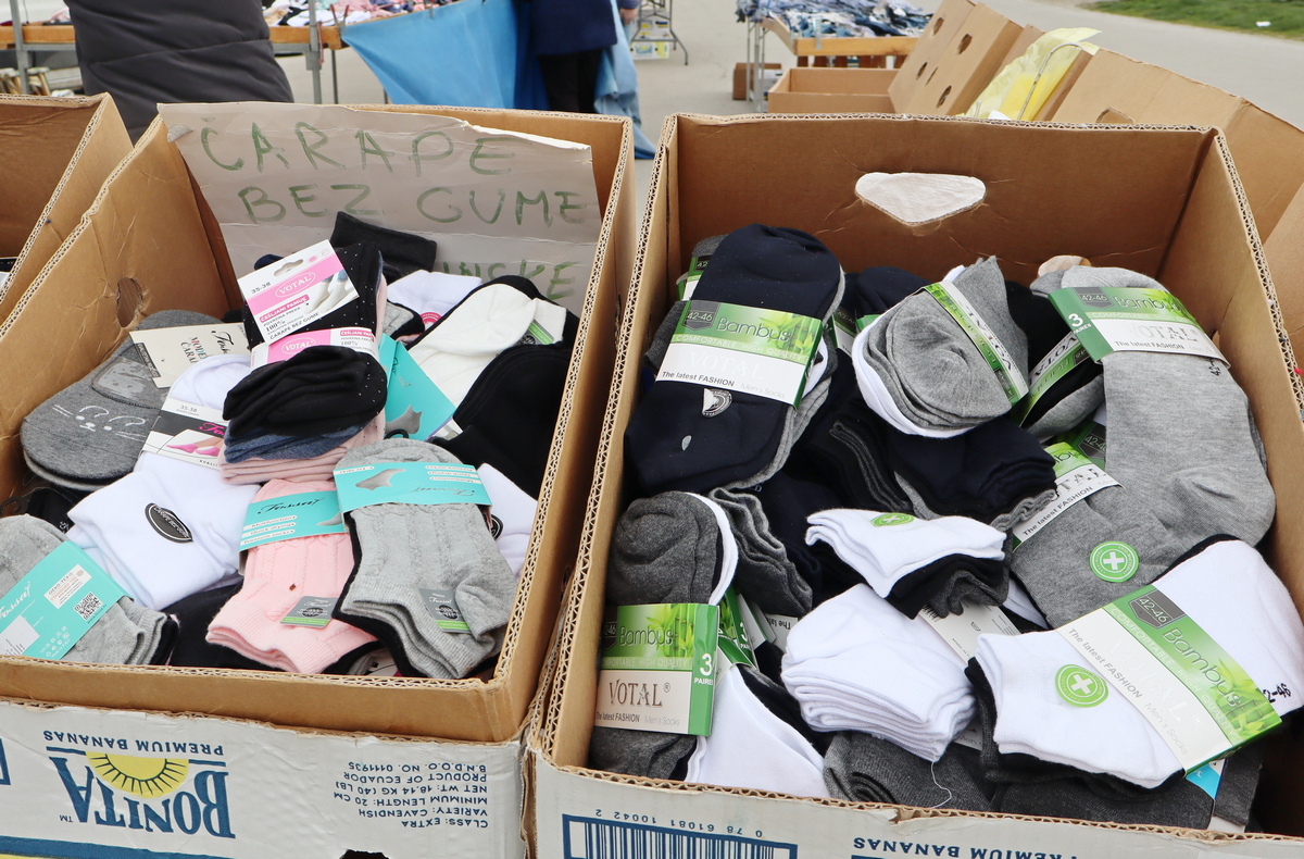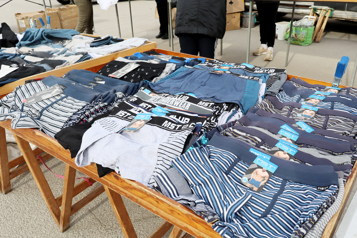Velik je izbor gaća, kojima se cijene kreću od 2 do 4 eura, kao i steznih gaća (6-8 eura), bokserica (4-6 eura), potkošulja (4 eura), čarapa bez gume i stopalica (2 do 3 eura/par), tajica i štrampli (7-10 eura). Cijene trenirki kreću se 4-13 eura, traperica 16-20 eura, majica 7-15 eura, vesti 13-17 eura te jakni 26-37 eura, a cipele, čizmice i tenisice koštaju 20-25 eura.