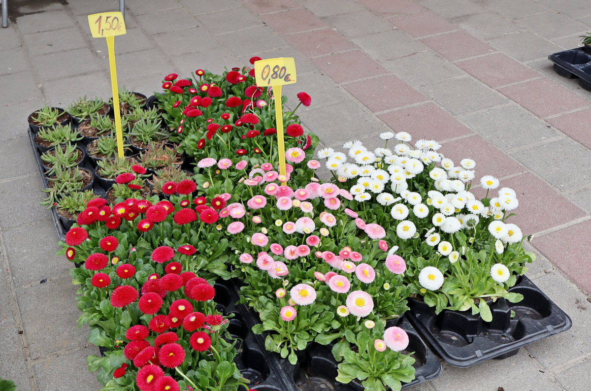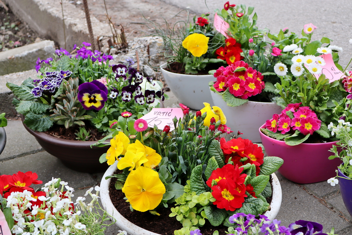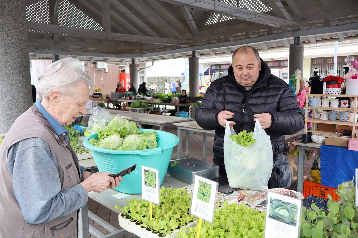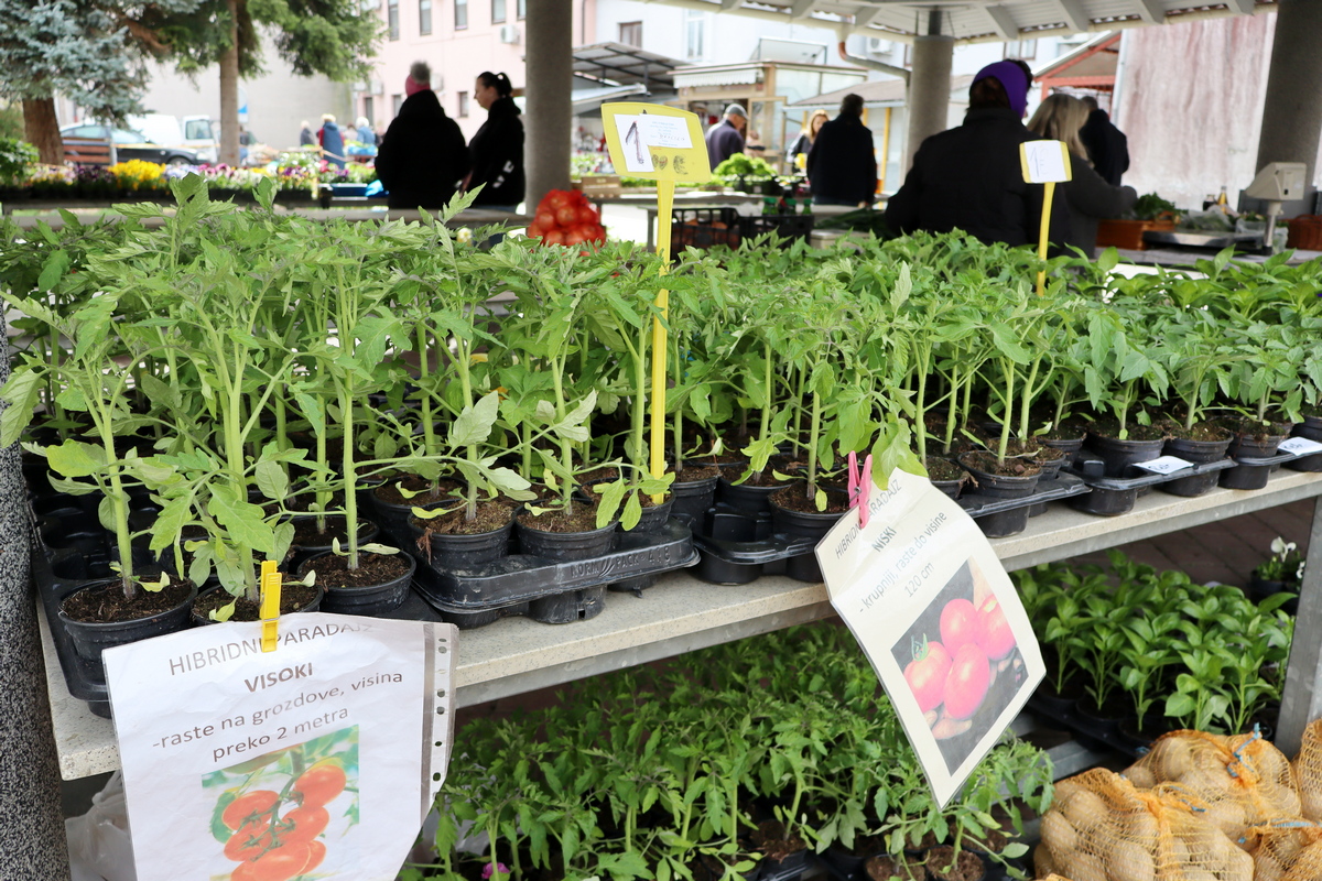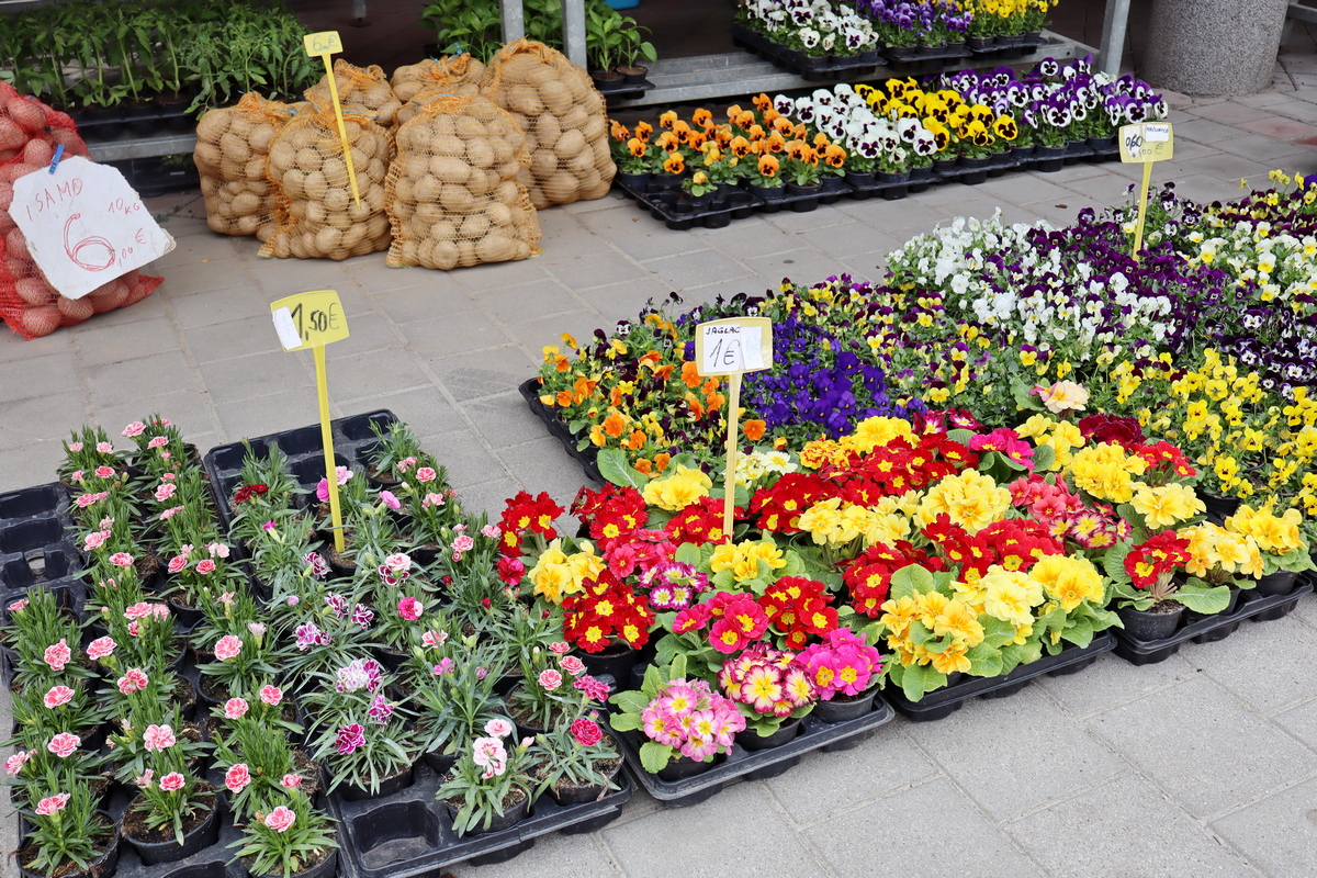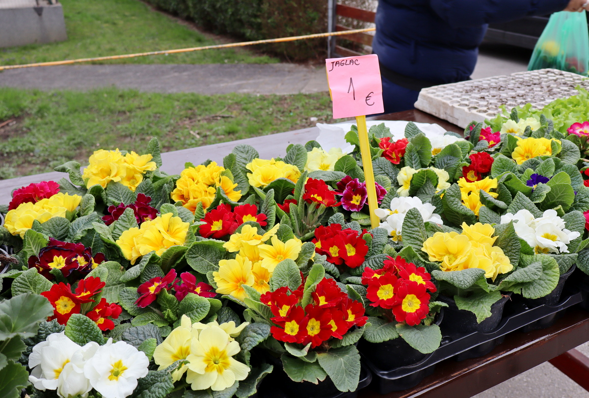 Tu su i raznorazno cvijeće, uskrsni ukrasi i presadnice povrća za vrt. Tako se sadnice jaglaca prodaju se po 1 euro, maćuhica 60 centi, tratinčice 80 centi, karanfili 1,50 eura, pelargonije 2 eura, ciklame 3 eura te razne trajnice od 1,50 do 2 eura. Složeni vrtići cvijeća u tegli su po 15 eura. Presadnice kelja, cvjetače, brokule i salate su po 20 centi, paprike od 50 centi do 1 eura, a rajčice od 1 do 2 eura.
