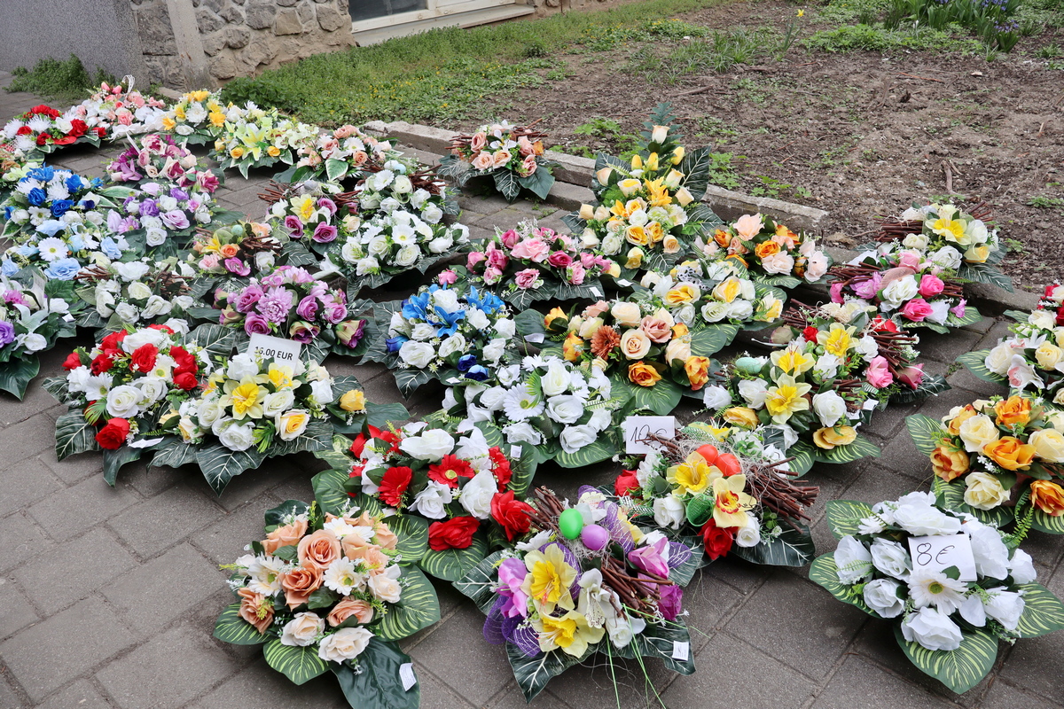 Tu su i mnogobrojni ukrasi za Uskrs: od jaja sa žaruljicama i zekom (10-12 eura), uskršnjih vijenaca za vrata (15-21 euro) do nevjerojatnog gipsanog cvijeća (12- 14,50 eura).