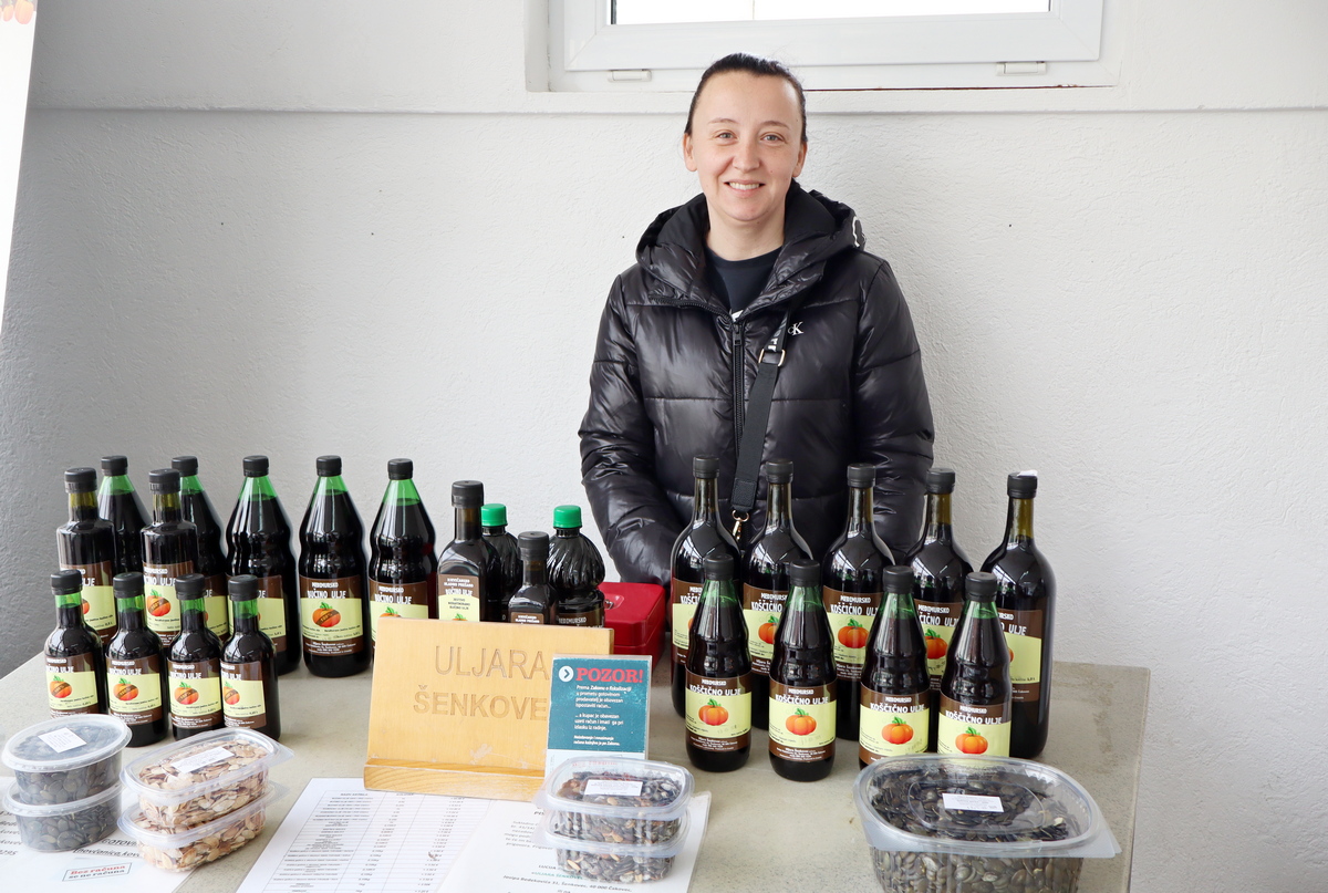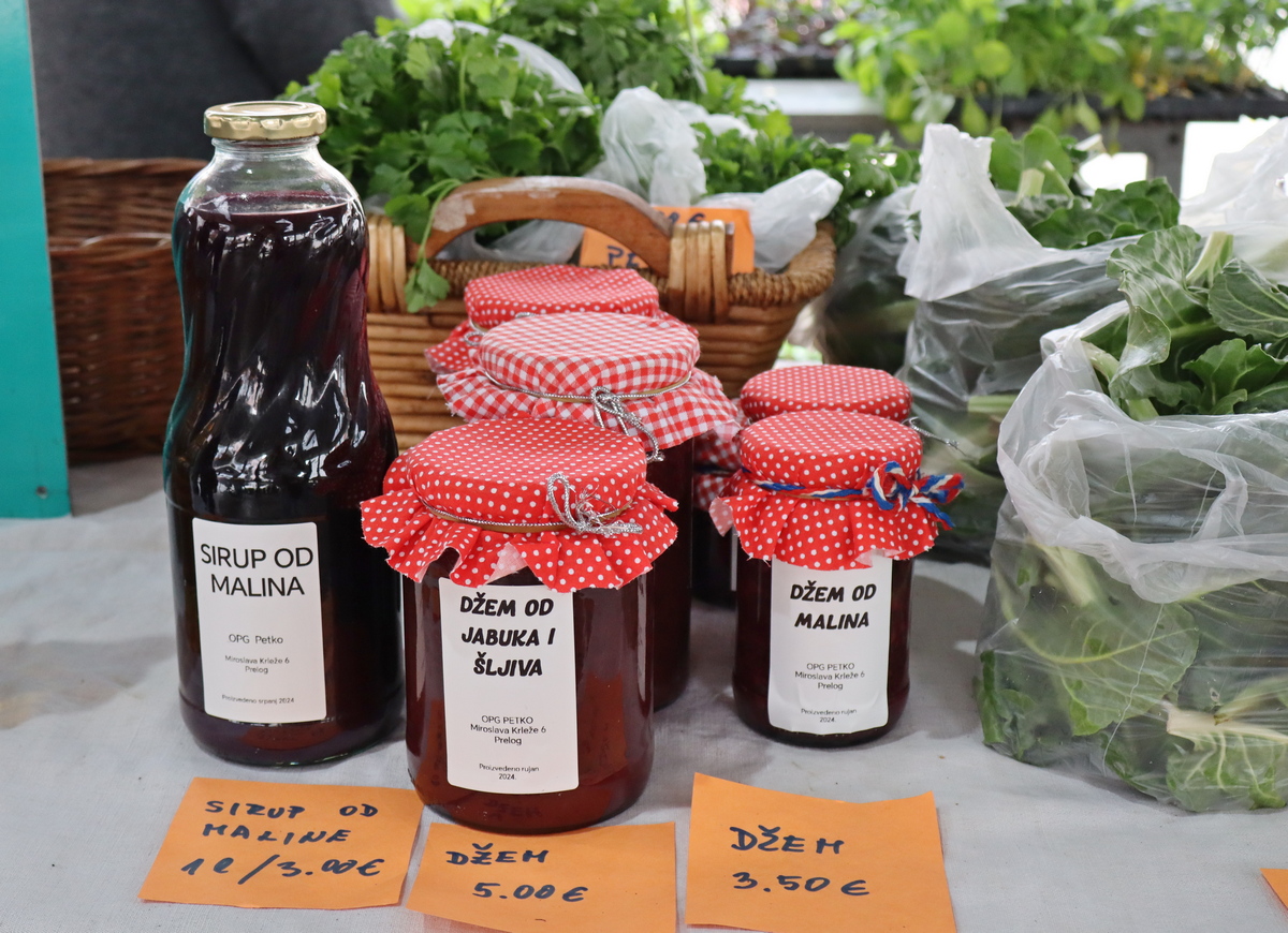 Tu su i ukrasi za groblje (4,5 -13 eura) koji neće uvenuti, kao i umjetno cvijeće i lampioni. Na tržnici u Prelogu možete pronaći i jabuke (1 – 1,50 eura/kg), krumpir (6 eura/10 kg), razne vrste svježih sireva, meda, džemova, soka od aronije (8 eura), kupinovo vino, tikvino ulje (17-20 eura) i dr.