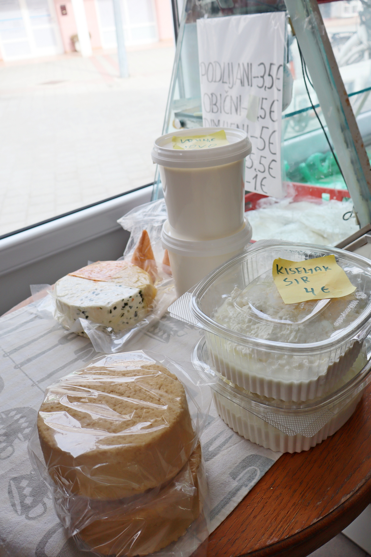 Tu se mogu naći domaća jaja (10 komada) za 3 eura, vezica mladog luka za 1,50 eura, stručak rotkvica za 1,50 eura. Od povrća, među ostalim nude se poriluk i brokula (3 eura/kg), salata (1,50 eura po glavici), zelje (1 euro/kg), kelj (2,50 eure/kg), tjestenina 2,50 eura vrećica (300 g).