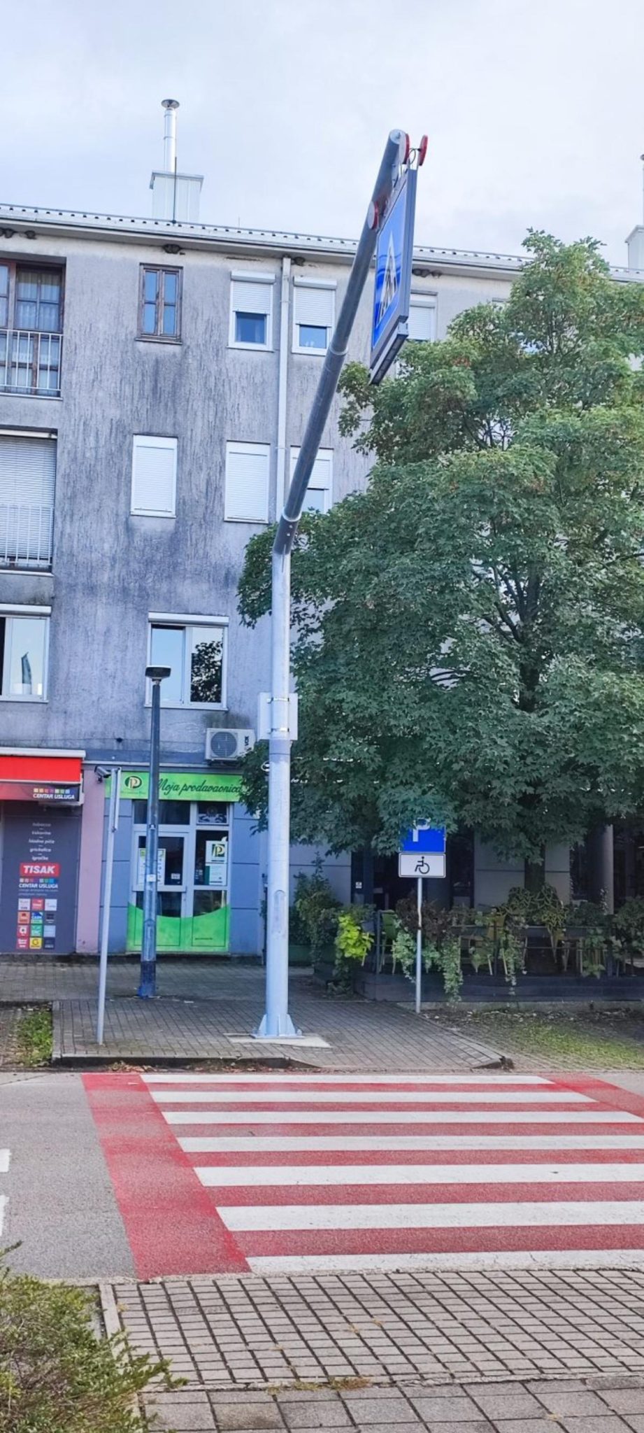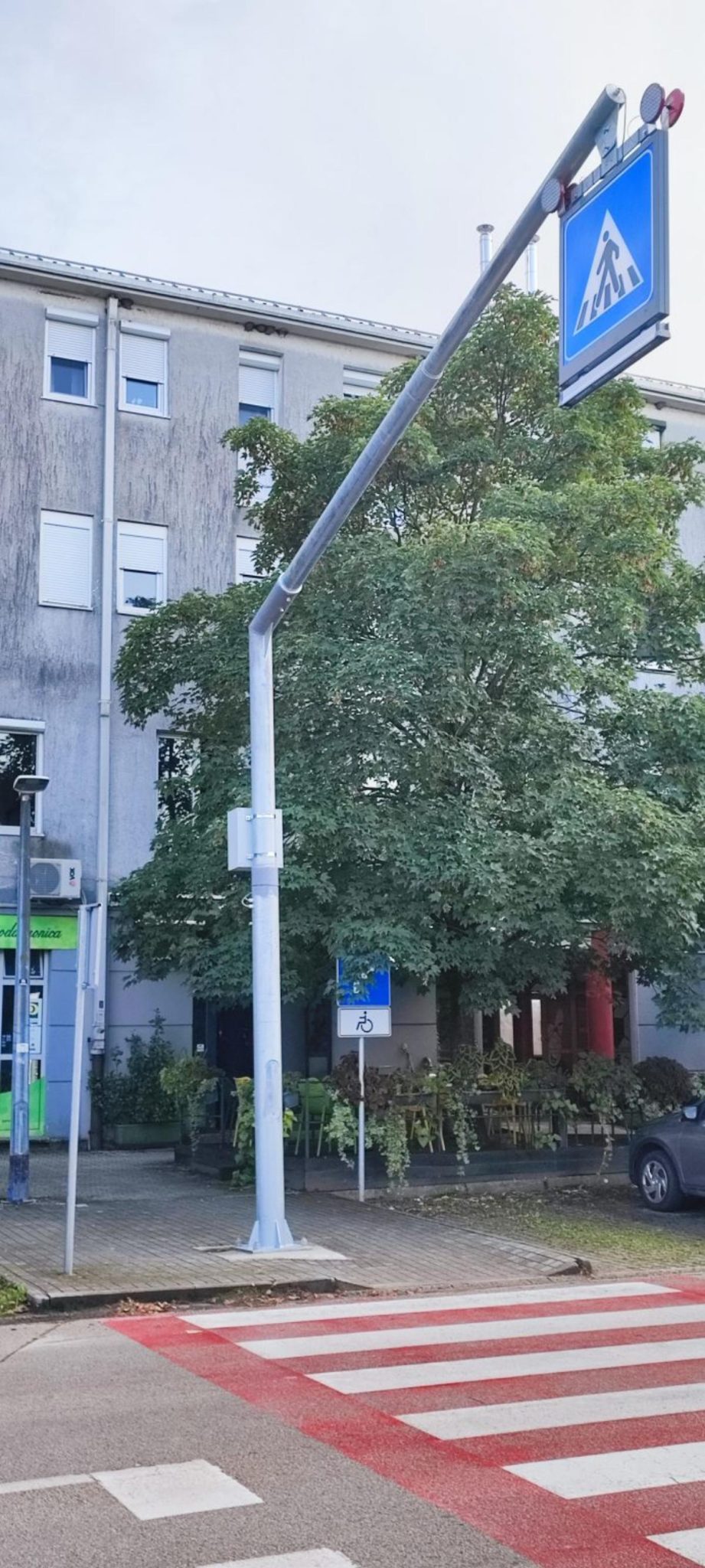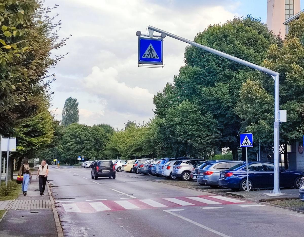 Postavljen prometni znak za obilježavanje pješačkog prijelaza s unutarnjim LED osvjetljenjem i konzolom