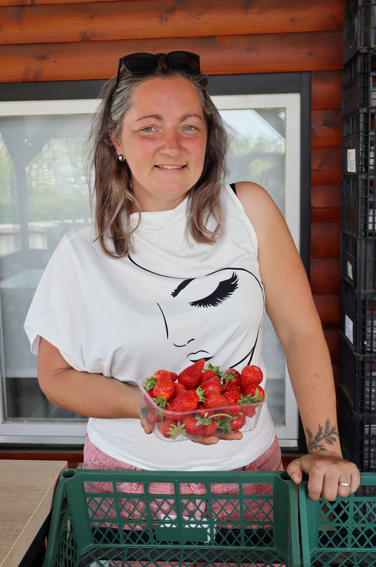 Prodaju jagoda organiziraju domaćinski – na početku sezone objave ponudu na Facebooku, kupci naruče, a jagode ih čekaju spakirane s njihovim imenom na stolu ispred cvjećarnice. Uvijek su to jagode ubrane istog jutra, jer Samita jamči da nikome neće prodati one koje su ubrane dan ranije. Ako nešto ostane navečer, dobije ih poni Bobi, a one koje počnu truliti – očiste, spakiraju i podijele ljudima za pekmez.