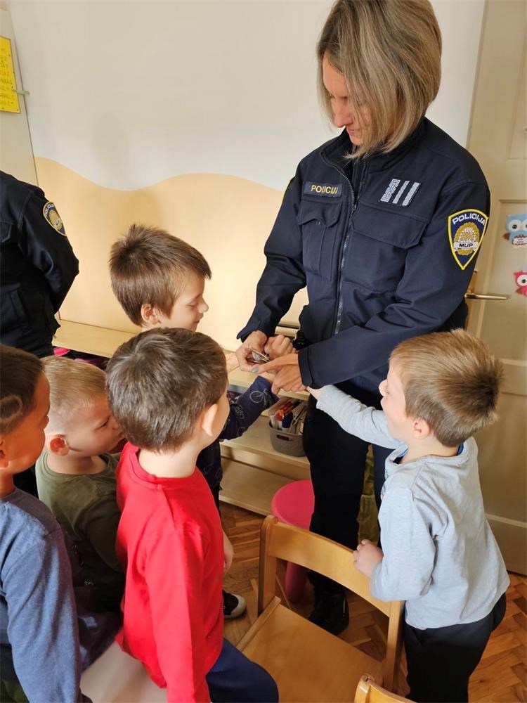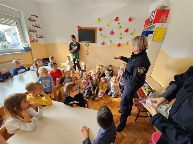 Djeci je prezentirana oprema i vozilo koje koristi policija u svakodnevnom radu, a dogovoreno je i preuzimanje reflektirajućih privjesaka (u obliku policijskih autića) kod policijskih službenica za nadzor i prevenciju Policijske uprave međimurske, jer je važno podići svijest o potrebi, ali i zakonitoj osnovi obilježavanja spomenute kategorije sudionika reflektirajućim materijalom. Ujedno, radi vlastite sigurnosti vrlo je važno da su pješaci vidljivi, osobito kada se kreću u ranojutarnjim, večernjim satima te u vrijeme smanjene vidljivosti.