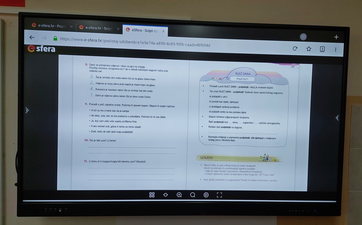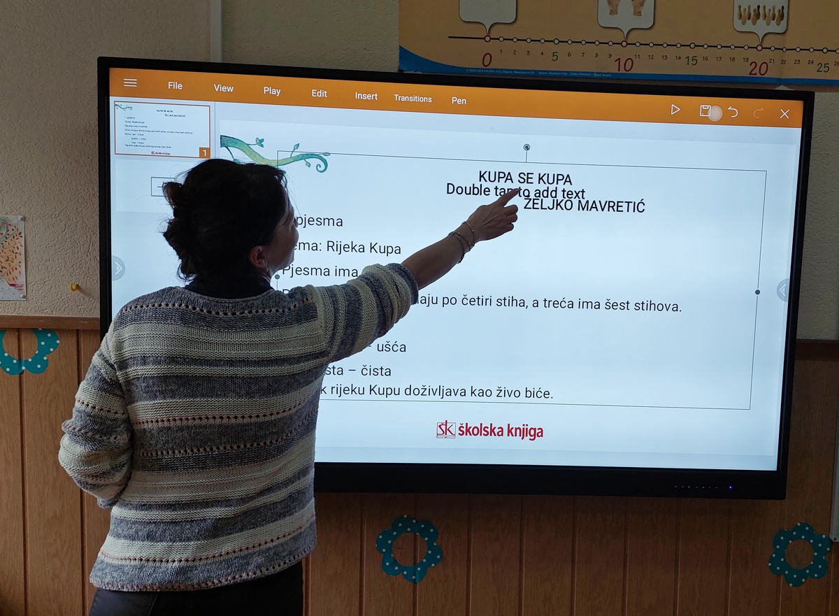 Ovi interaktivni ekrani funkcioniraju kao računala sa touch screenom, odnosno udžbenici u digitalnom obliku, na njimu se može raditi sve i olakšavaju nastavu i djeci i učiteljicama. Učiteljice ih već koriste i oduševljene su.