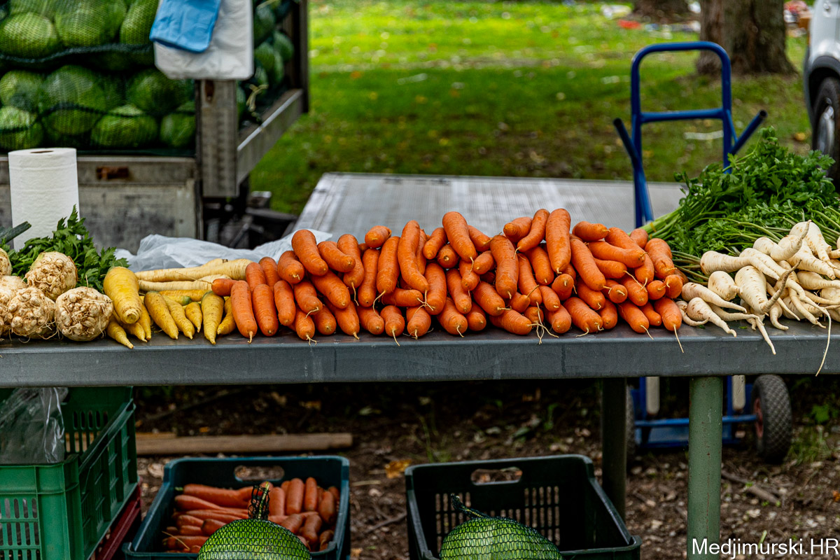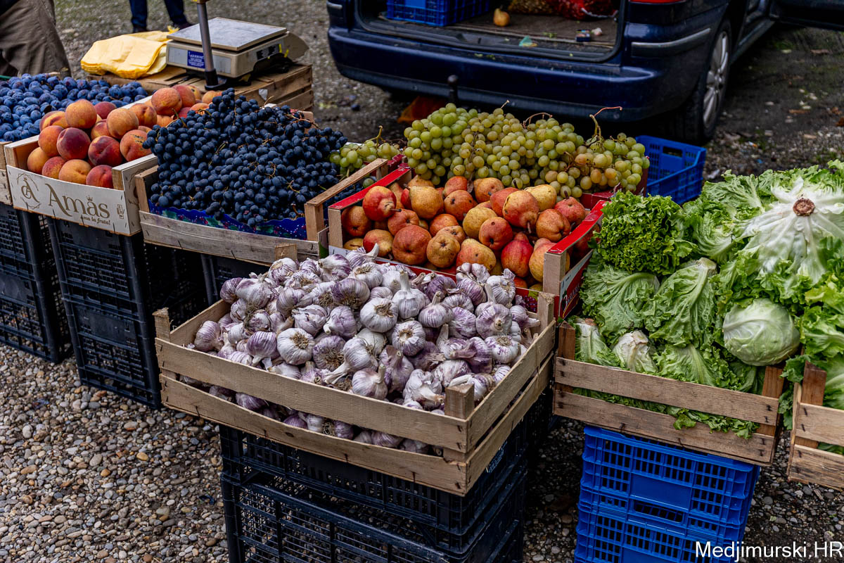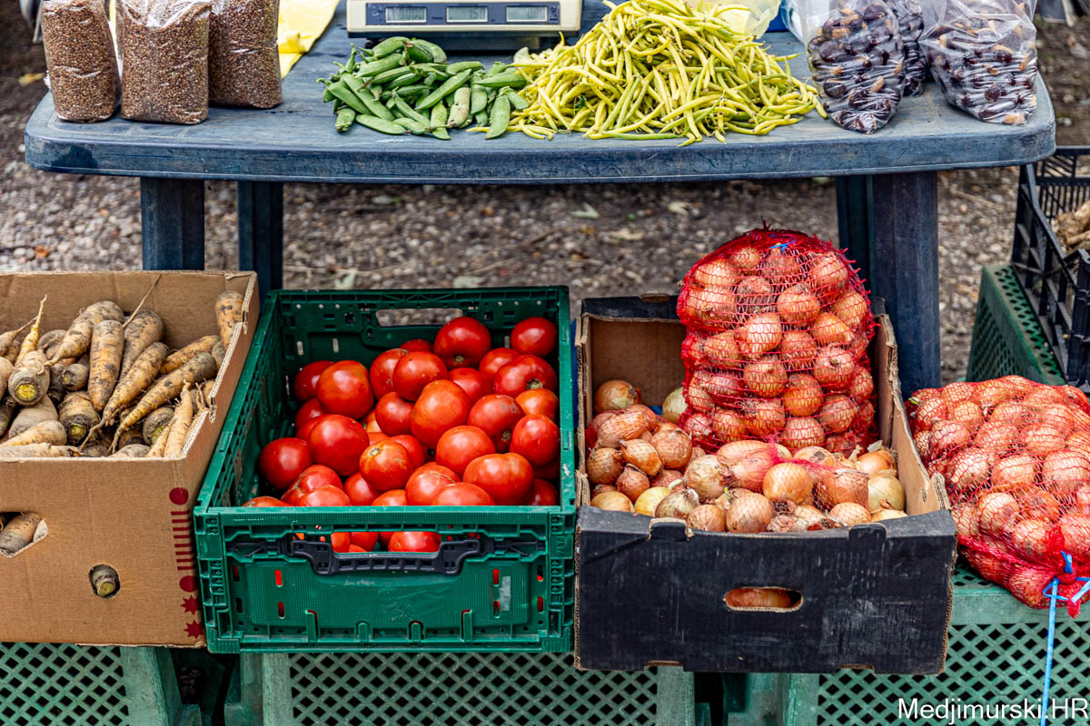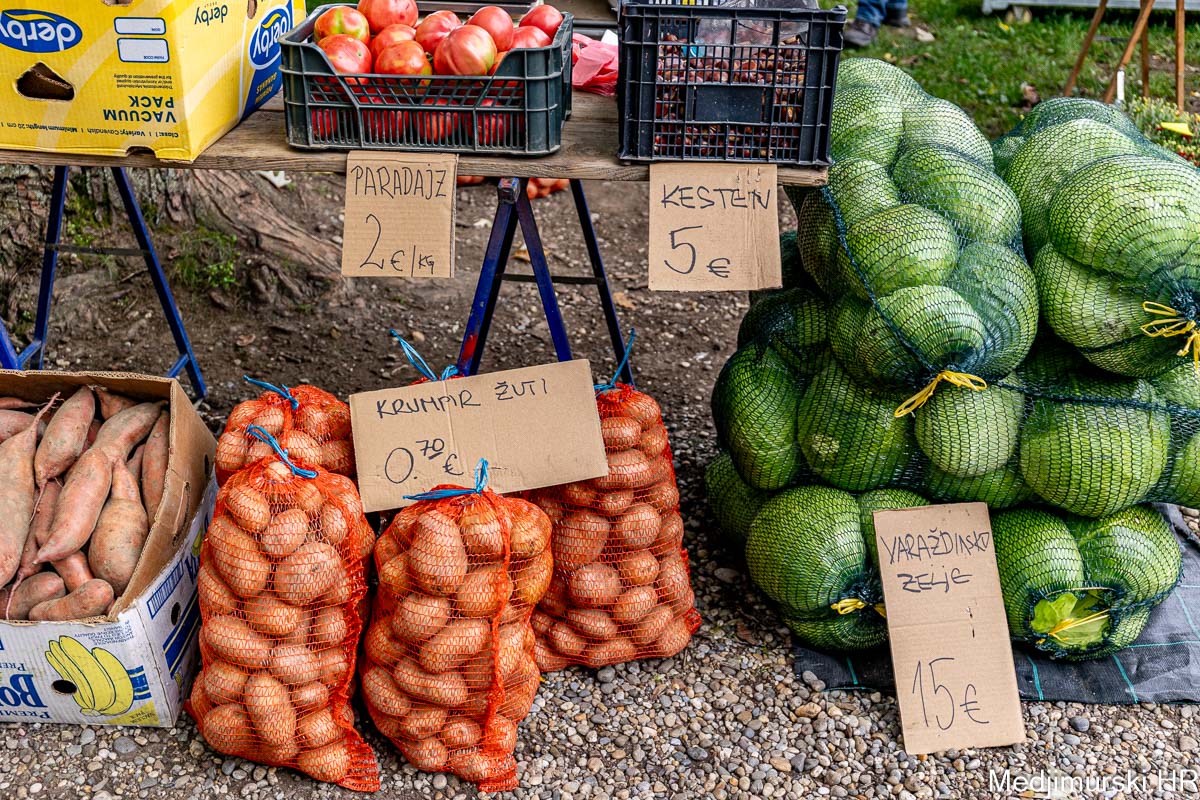 Patliđan je nuđen po 1 euro kg. Paprika različite veličine, boje i sorte, mogla kupiti od 1,5 do 3 eura kilogram, a krastavci, ovisno o veličini od 0,50 do 4 eura kg. Domaći češnjak je prodavan po 6 i 8 eura kilogram, a luk po 1 euro kg. Zabilježili smo i dobru ponudu repe po 1,20 eura kg. Tikvice zelene bile su po 2 eura, a ukrasne po 0,50 i 1 eura komad. Ukrasni klip kukuruza u boji prodavan je po 0,50 eura komad.