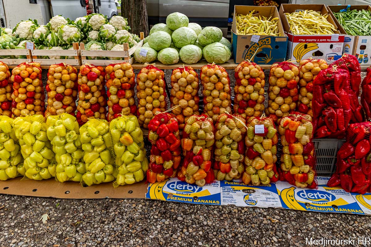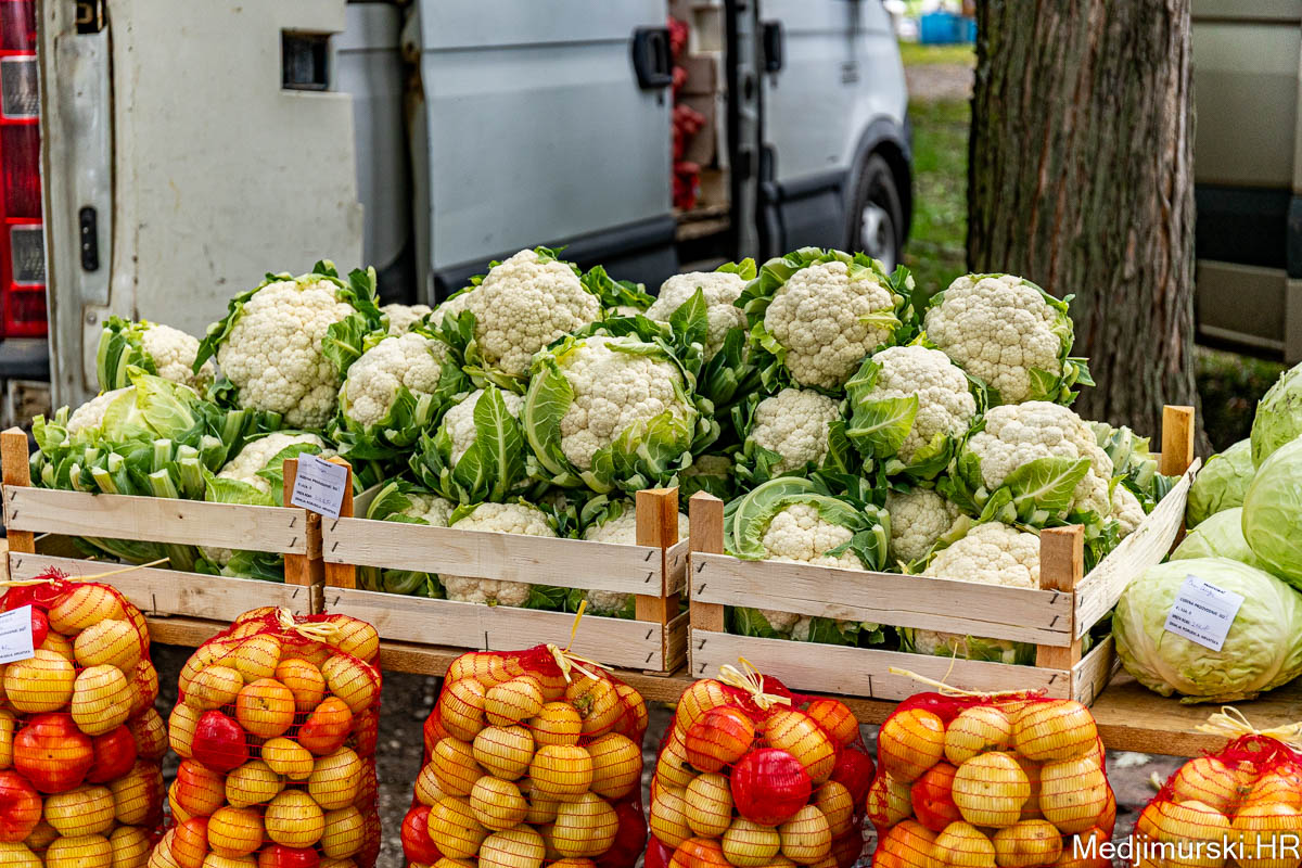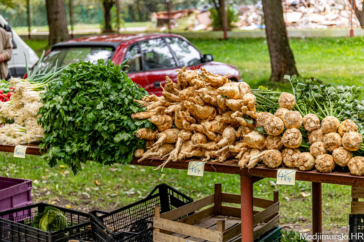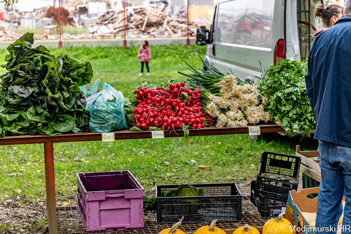 Patliđan je nuđen po 1 euro kg. Paprika različite veličine, boje i sorte, mogla kupiti od 1,5 do 3 eura kilogram, a krastavci, ovisno o veličini od 0,50 do 4 eura kg. Domaći češnjak je prodavan po 6 i 8 eura kilogram, a luk po 1 euro kg. Zabilježili smo i dobru ponudu repe po 1,20 eura kg. Tikvice zelene bile su po 2 eura, a ukrasne po 0,50 i 1 eura komad. Ukrasni klip kukuruza u boji prodavan je po 0,50 eura komad.