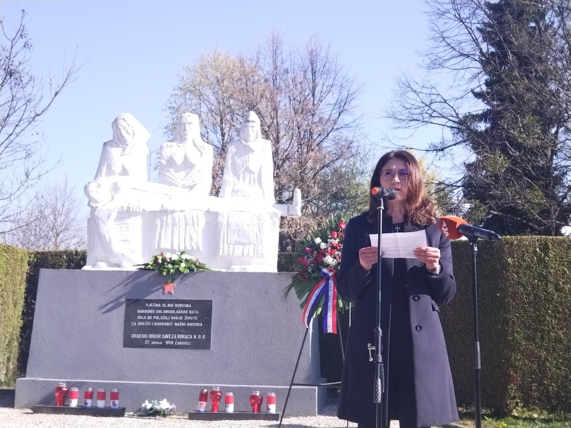 – Tim povodom položili smo danas vijence i zapalili svijeće ispred spomen-ploče uz Palaču Zrinskih te kod Spomenika poginulim partizanima na čakovečkom groblju u Mihovljanu. I ovaj je spomenik Luje Bezeredija, kao i većina ostalih, podignut kao upozorenje nekim budućim generacijama kako izopačeni ljudski um u smrt može poslati milijune. Danas kada polako odlaze i posljednji živući sudionici 2. svjetskog rata te kad on postaje samo poglavlje u udžbenicima, to je posebno važno, jer na žalost, čovječanstvo rijetko uči iz iskustava mračnih razdoblja.