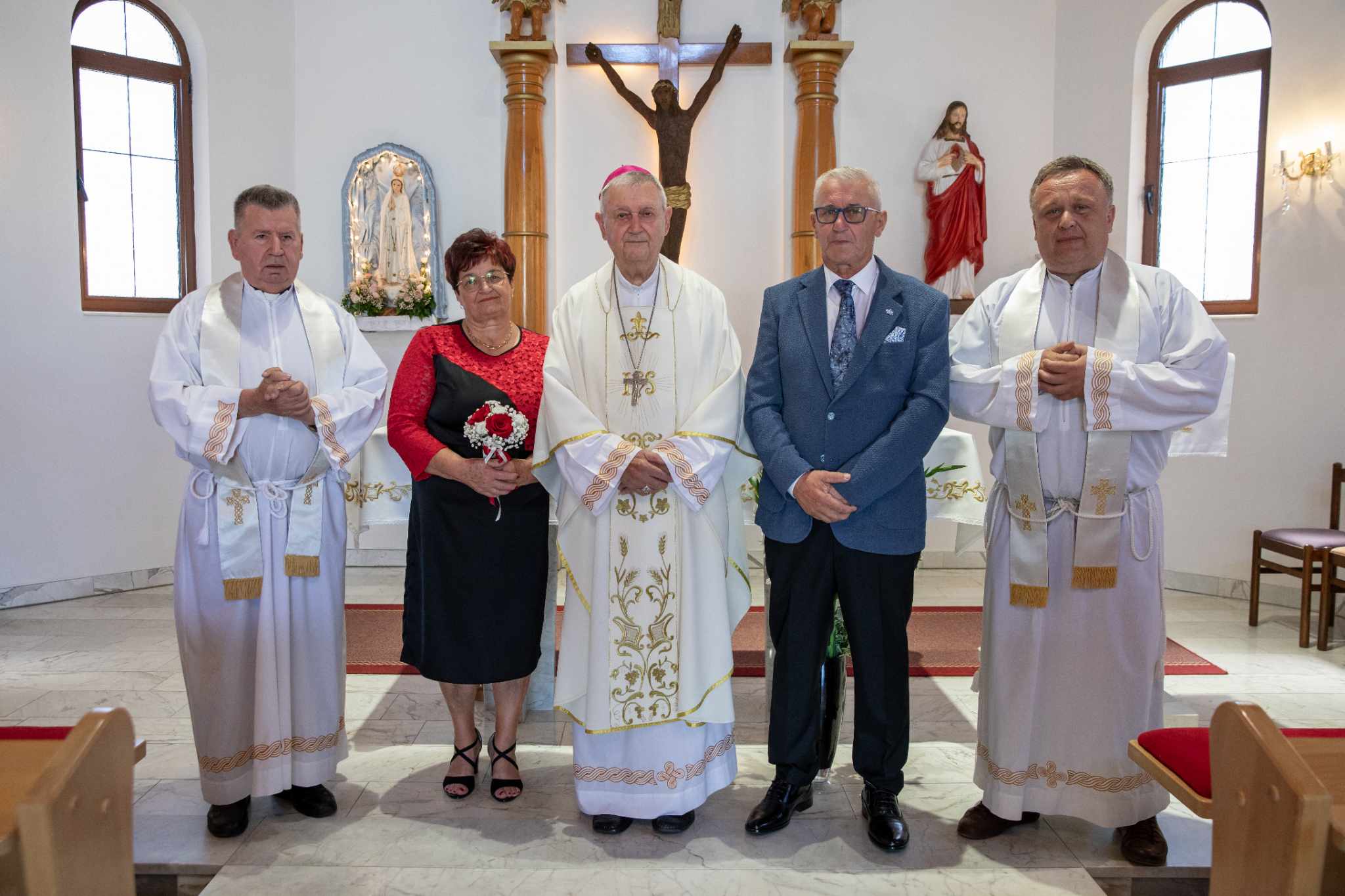 Misno slavlje posvećeno zlatnim bračnim godinama predvodio je biskup u miru msgr. Josip Mrzljak uz velč. Danijela Bistrovića župnika Svetog Jurja na Bregu i svećenika u miru Tomislava Antekolovića.