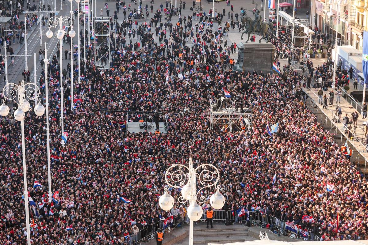 Suncem okupan glavni zagrebački trg ispunili su navijači različitih dobi, od djece do starijih, mnogi žele pozdraviti srebrne hrvatske rukometaše koji dolaze oko 16 sati, javlja 24 sata.