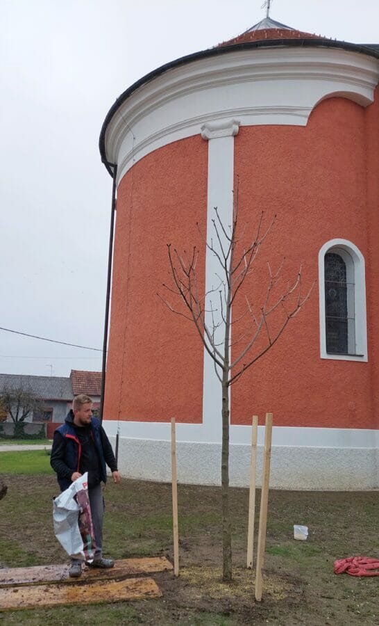 Doista, riječ je o većim sadnicama drveća, za koje je trebalo iskopati velike rupe, a radovi su trajali satima. Dok su lipe posađene ispred crkve, na vidljivom mjestu, kesten je smješten u stražnjem dijelu crkvenog okoliša, odnosno sa zapadne strane crkve. Ovom lijepom drveću želimo dobrodošlicu!